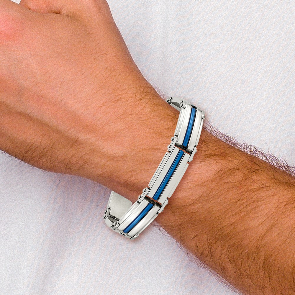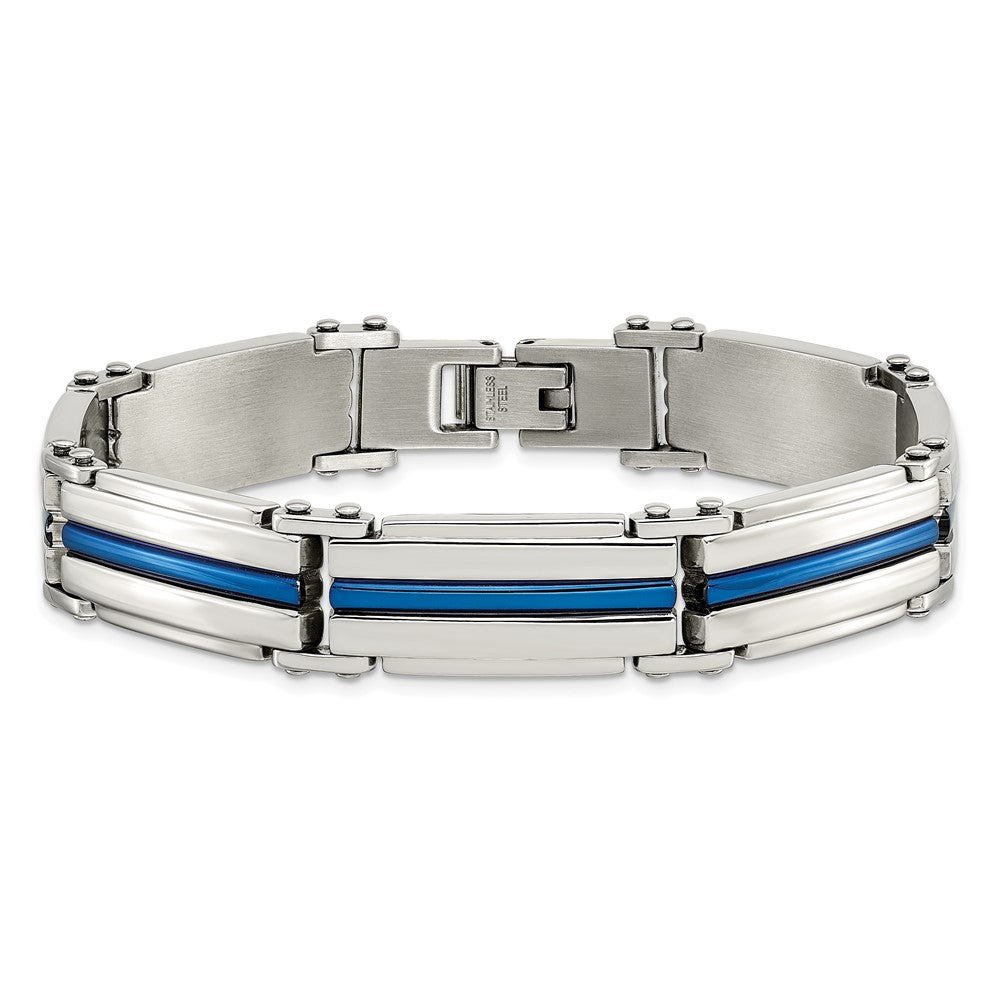Chisel Stainless Steel Polished Blue IP-plated 8.5 inch Link Bracelet