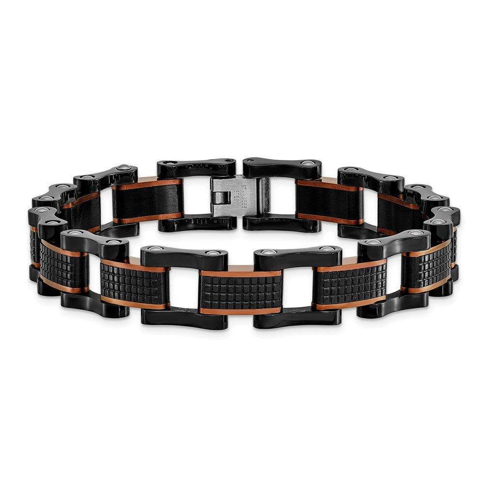 Chisel Stainless Steel Polished and Textured Black and Brown IP-plated 8.25 inch Open Link Bracelet