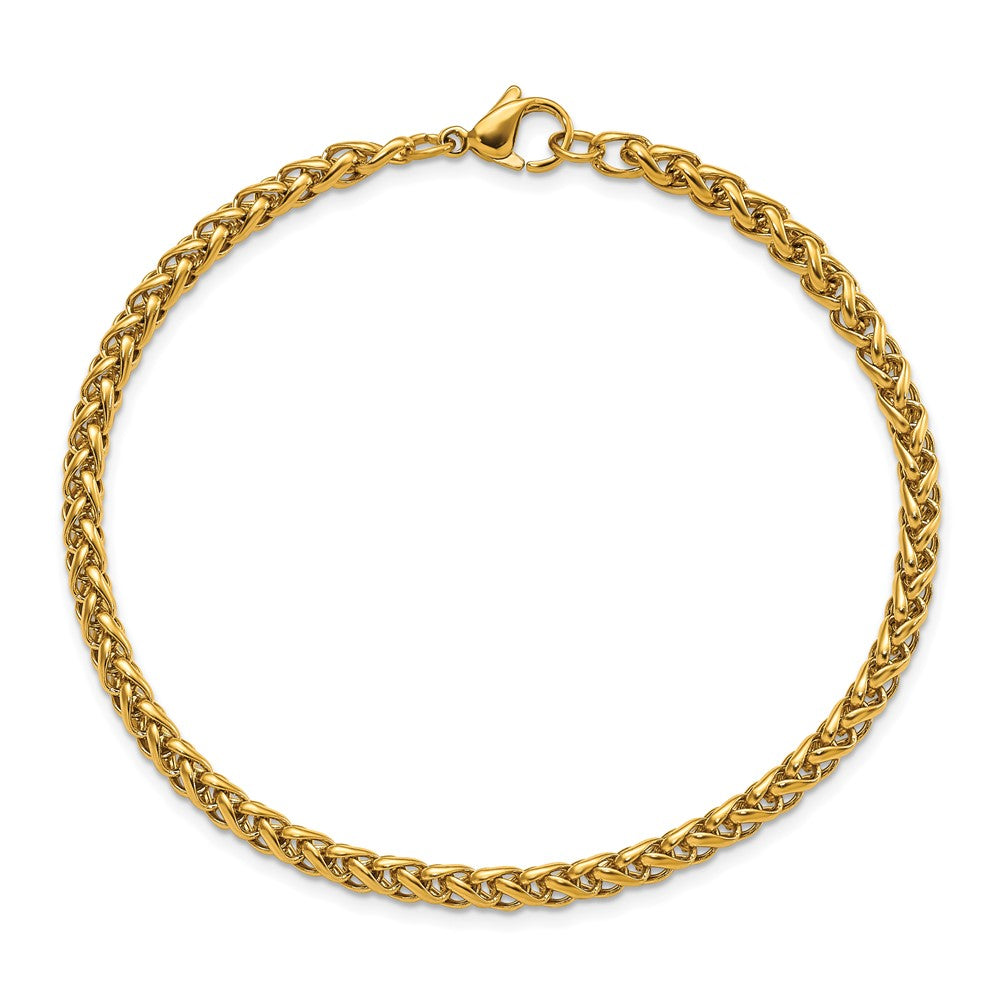 Chisel Stainless Steel Polished Yellow IP-plated 4mm 8.5 inch Spiga Chain Bracelet