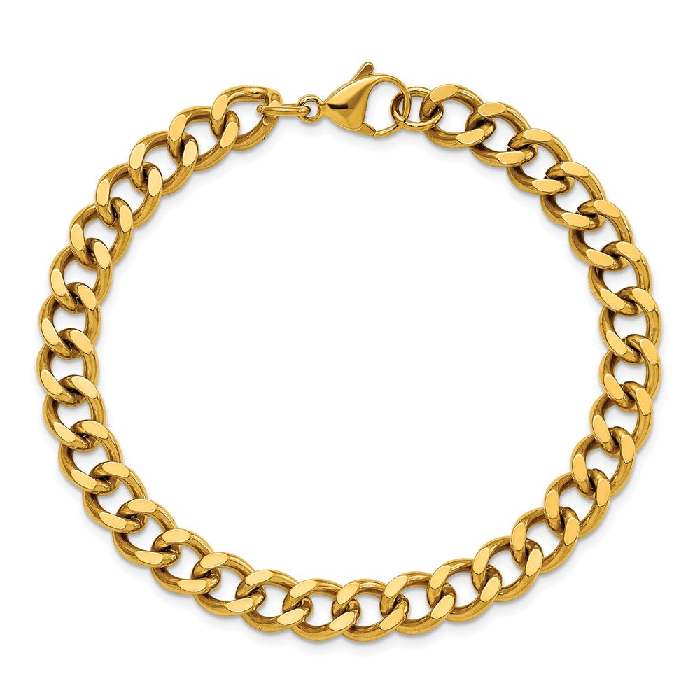 Chisel Stainless Steel Polished Yellow IP-plated 8mm 8.5in Curb Chain Bracelet