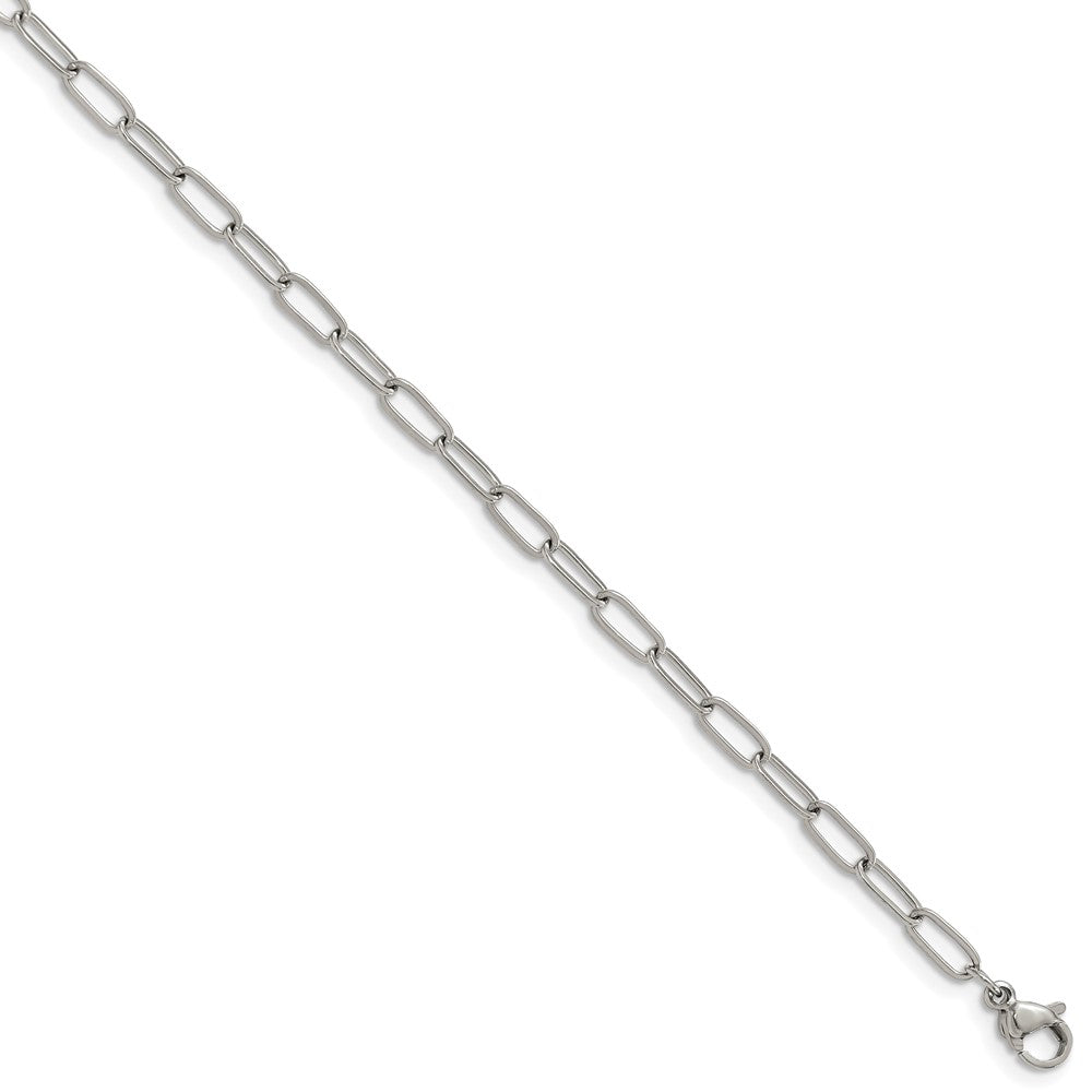 Chisel Stainless Steel Polished Elongated Open Link Paperclip 6.5 inch + 1.25 inch Bracelet
