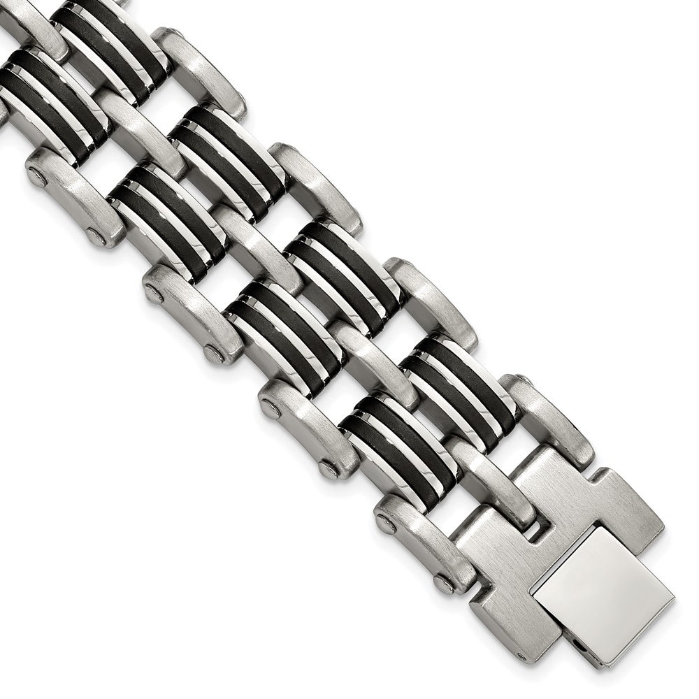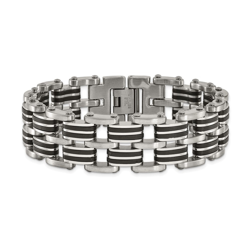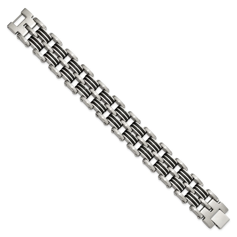 Chisel Stainless Steel Brushed and Polished with Black Rubber Inlay 8.25 inch Link Bracelet