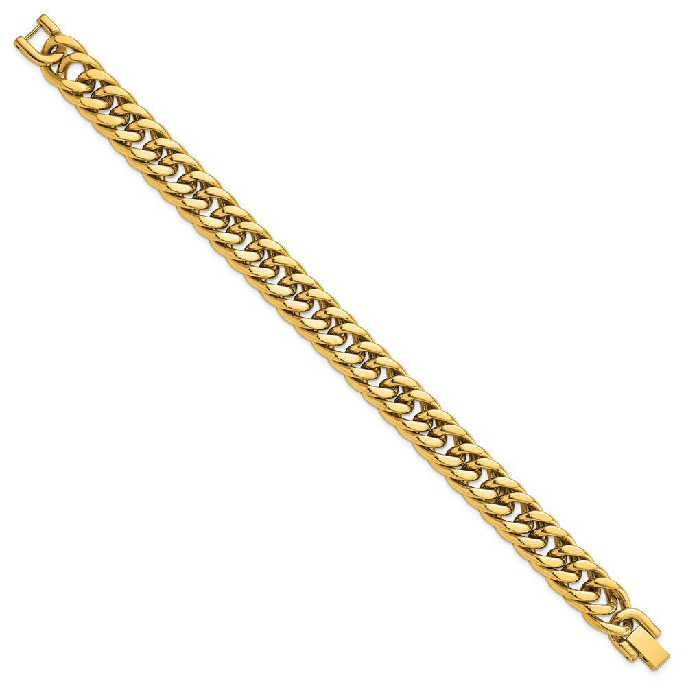 Chisel Stainless Steel Polished Yellow IP-plated 12mm 8.5 inch Heavy Curb Link Bracelet
