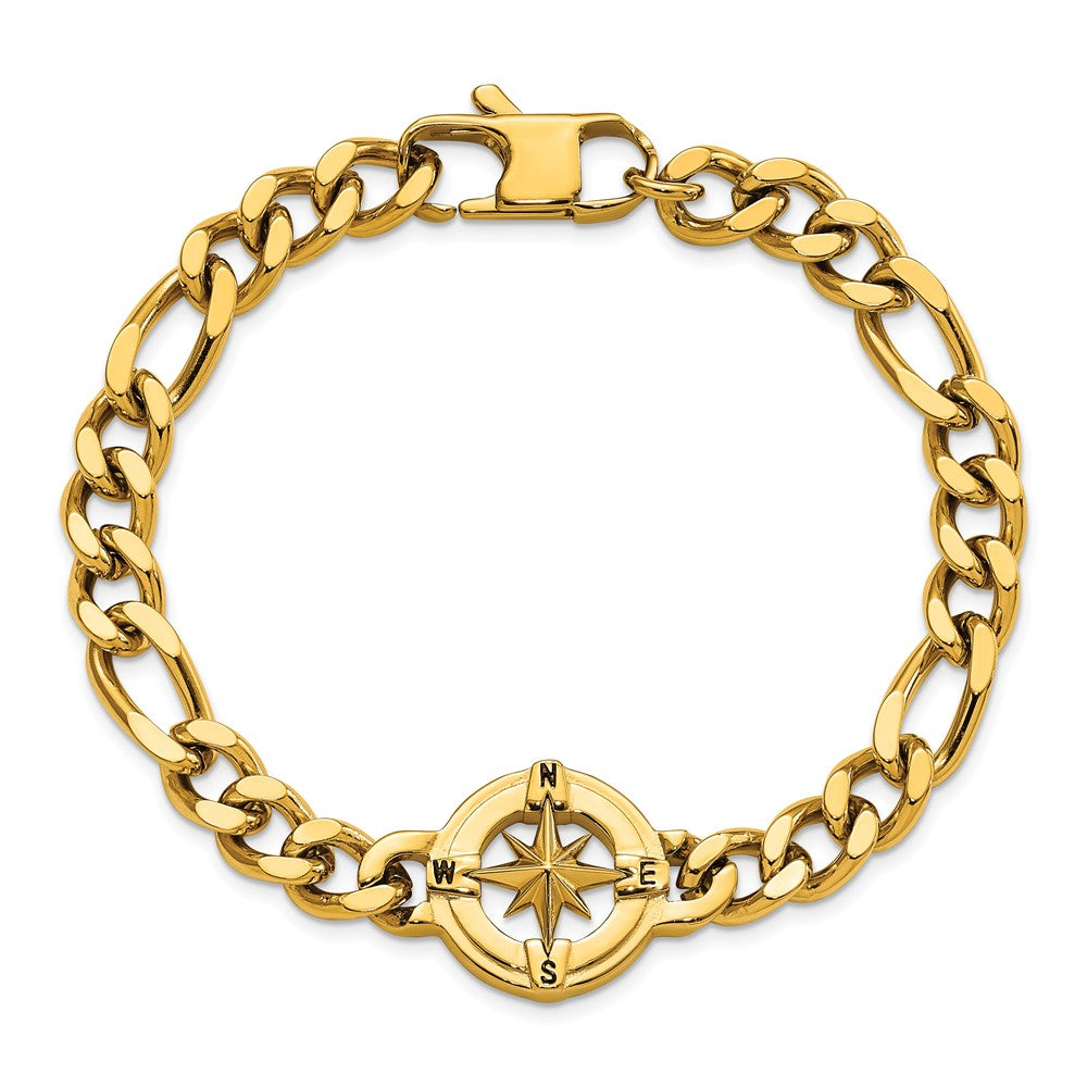Chisel Stainless Steel Polished Yellow IP-plated Compass 8.75 inch Bracelet
