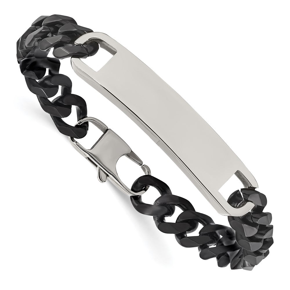 Chisel Stainless Steel Polished Black IP-plated Curb Chain 8.5 inch ID Bracelet