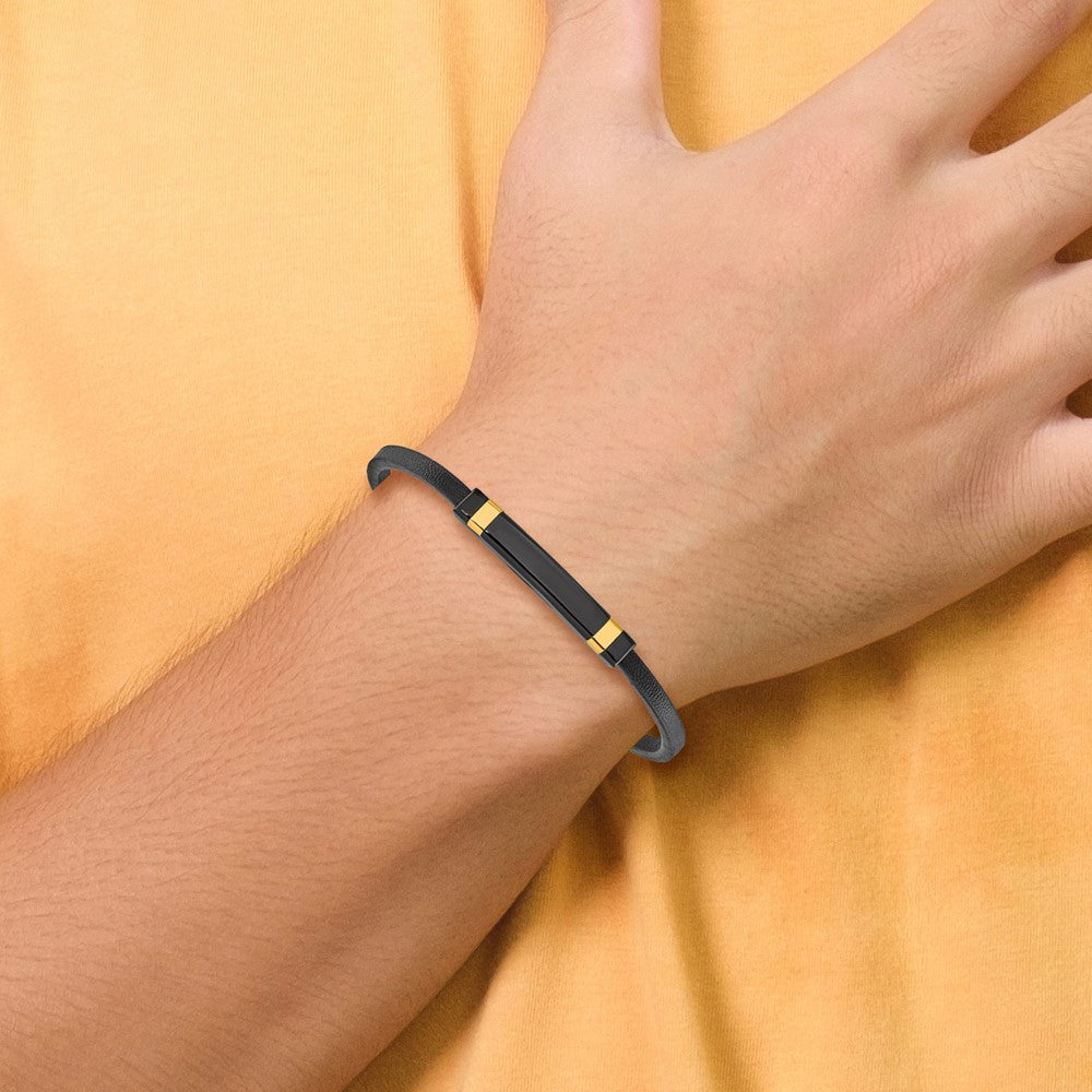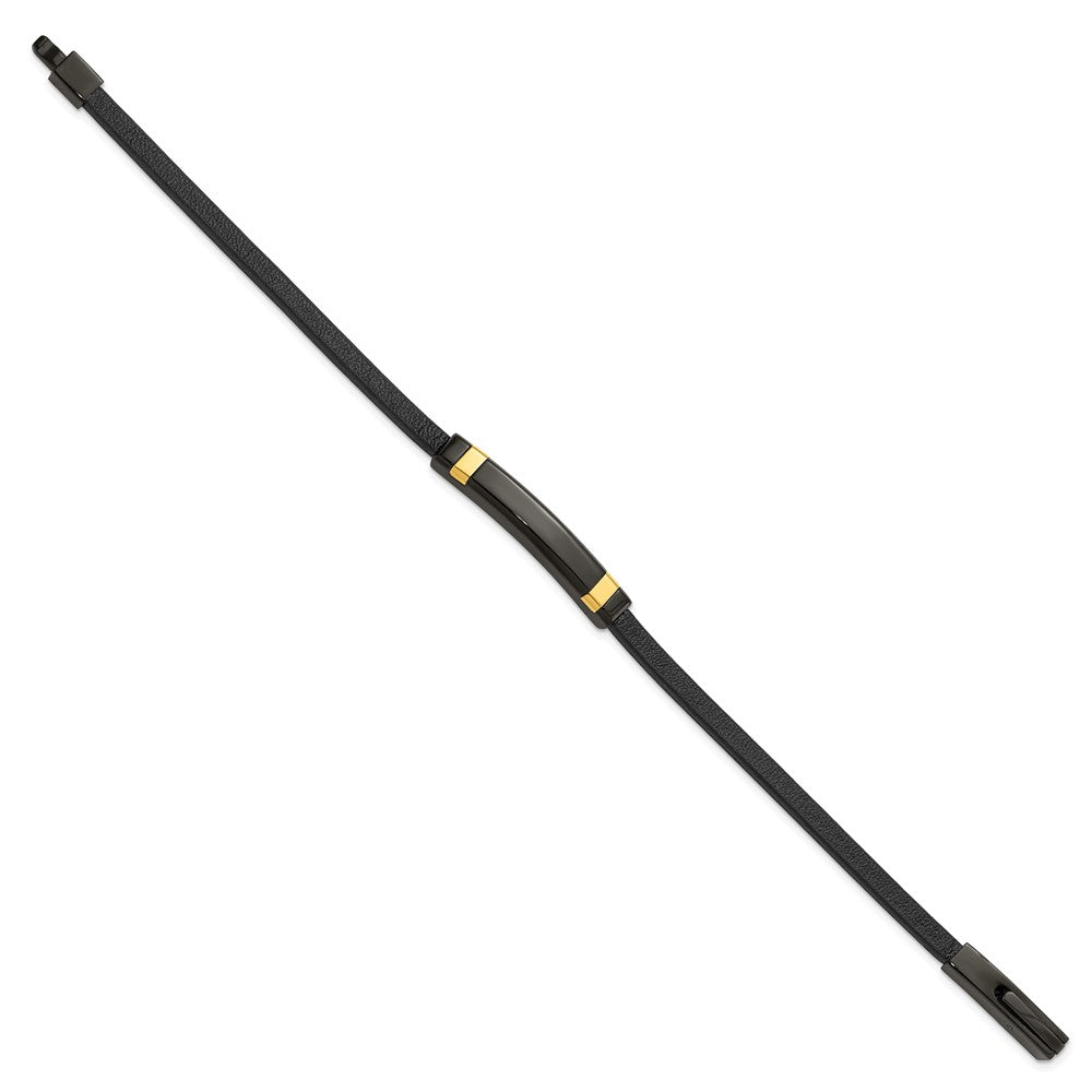 Chisel Stainless Steel Polished Black and Yellow IP-plated Black Leather 8.5 inch ID Bracelet
