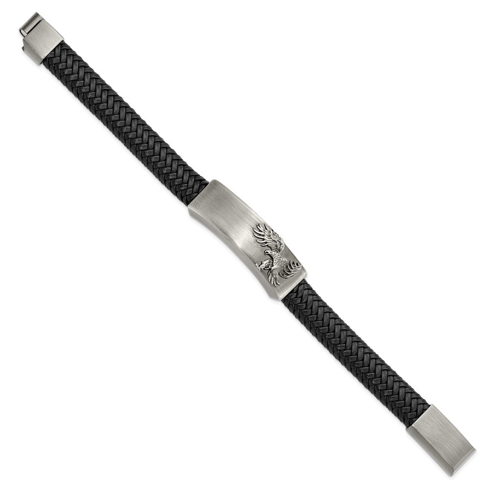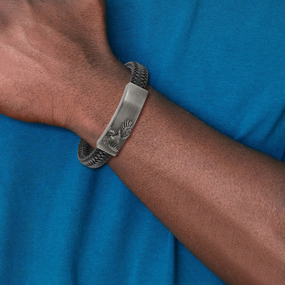 Chisel Stainless Steel Antiqued and Brushed Eagle Braided Black Leather 8.5 inch ID Bracelet
