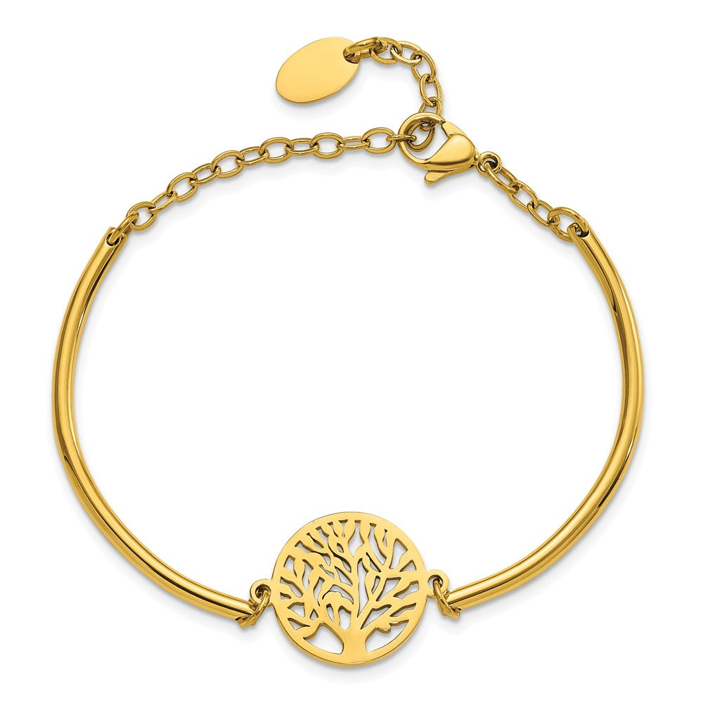 Chisel Stainless Steel Polished Yellow IP-plated Tree 5.75 inch Bangle Bracelet with 2 inch Extension