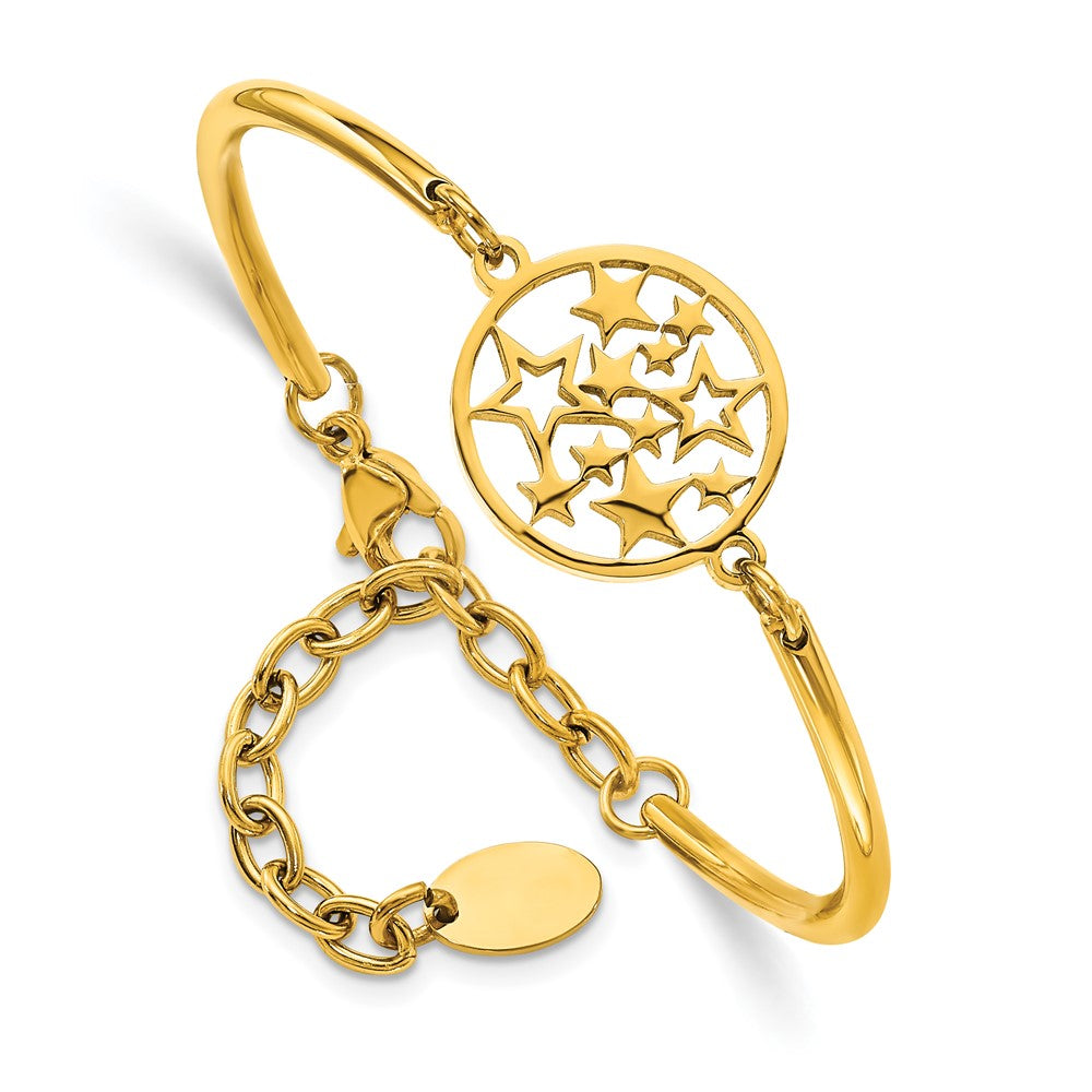 Chisel Stainless Steel Polished Yellow IP-plated Stars 5.5 inch Bangle Bracelet with 2 inch Extension