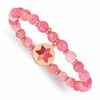Chisel Stainless Steel Polished Rose IP-plated Enameled Flower Charm 6mm Pink Agate Beaded Stretch Bracelet