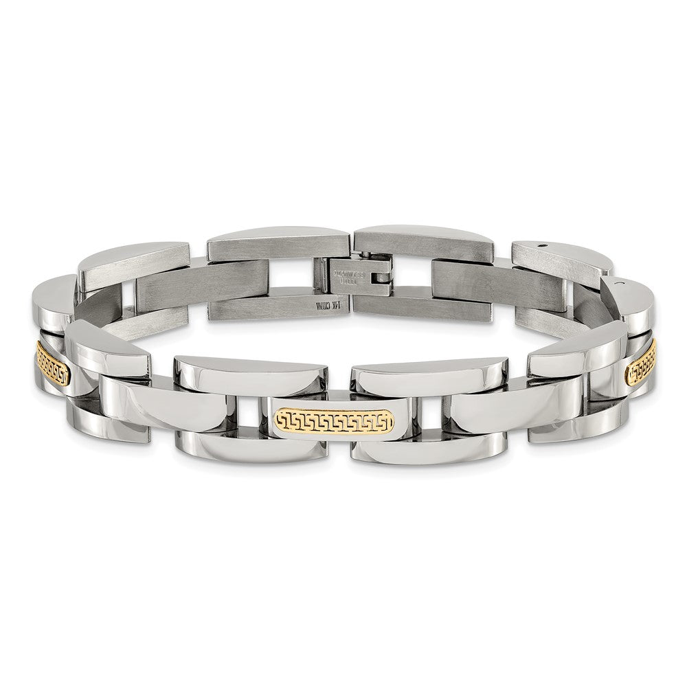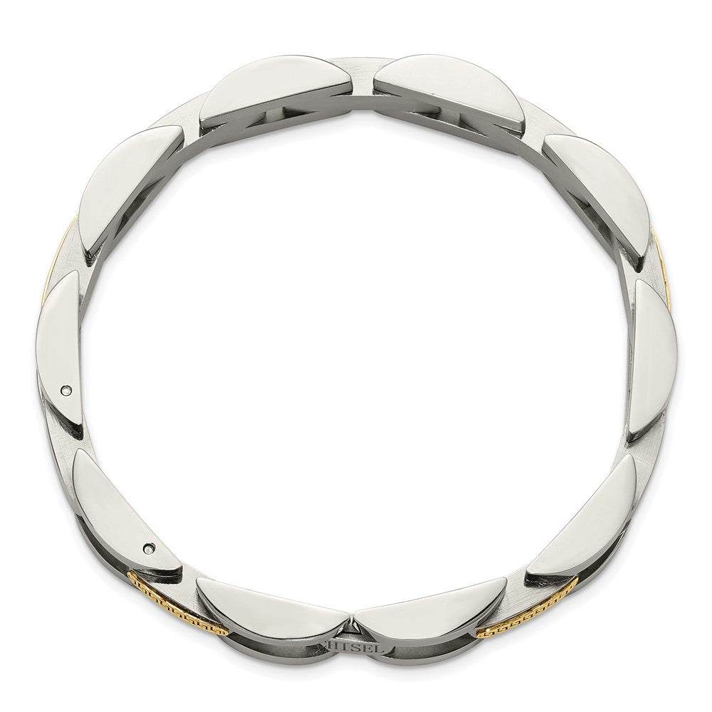 Chisel Stainless Steel Polished with 14K Gold Accent 8.25 inch Link Bracelet