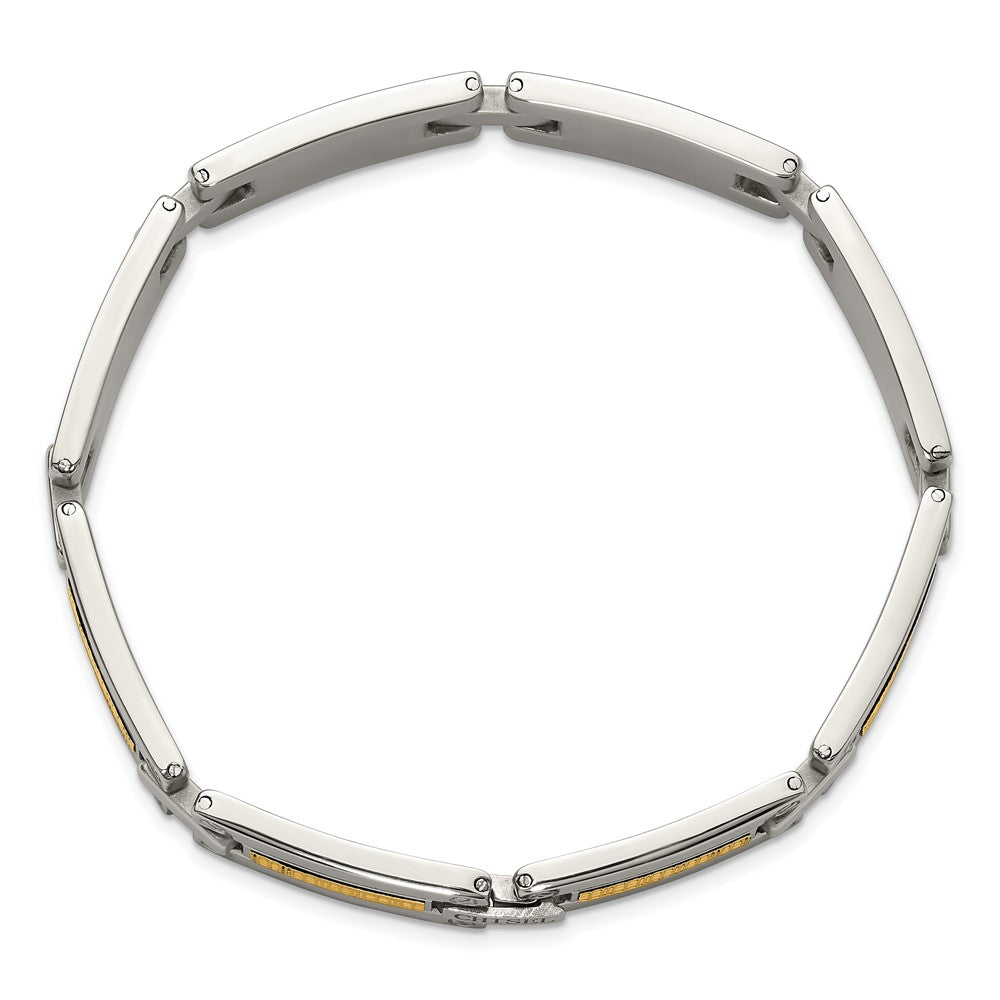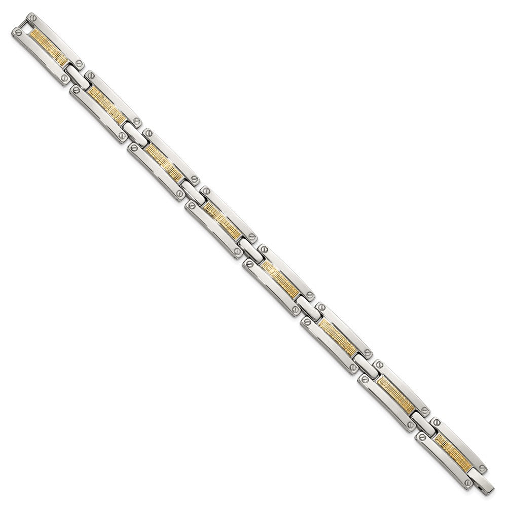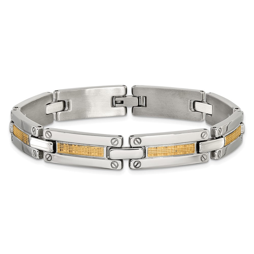 Chisel Stainless Steel Polished with 14K Gold Accent Basket Weave Pattern 8.5 inch Link Bracelet