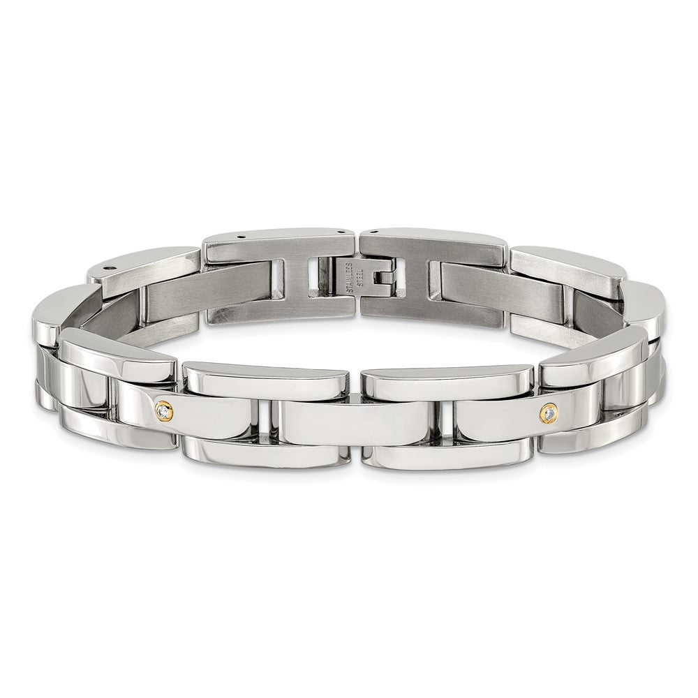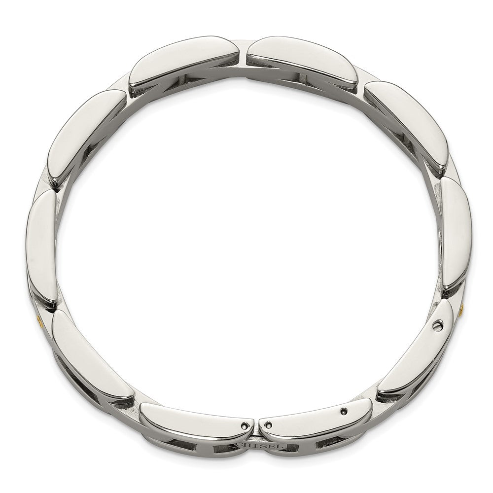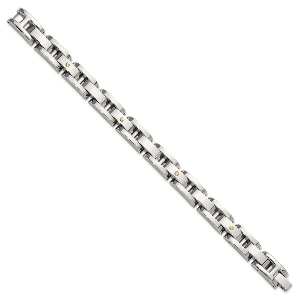 Chisel Stainless Steel Polished with 14K Gold Accent and 1/15ct. Diamond 8.25 inch Link Bracelet