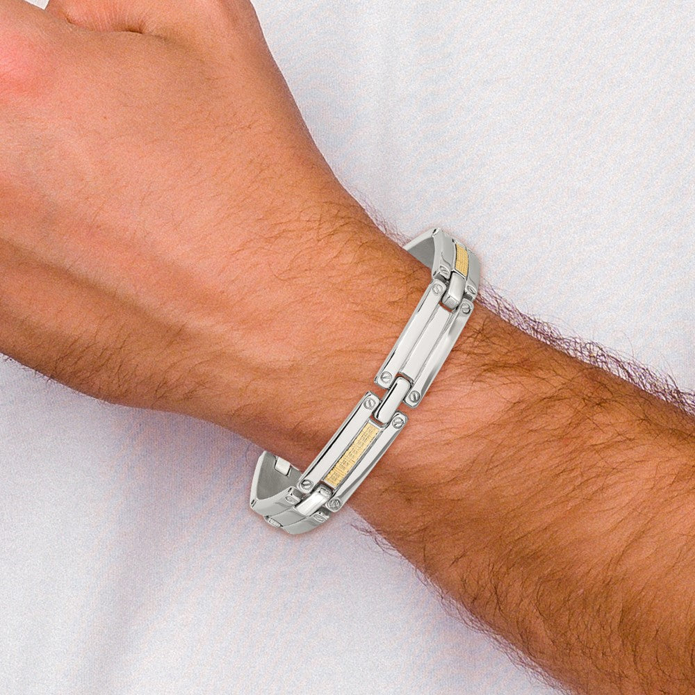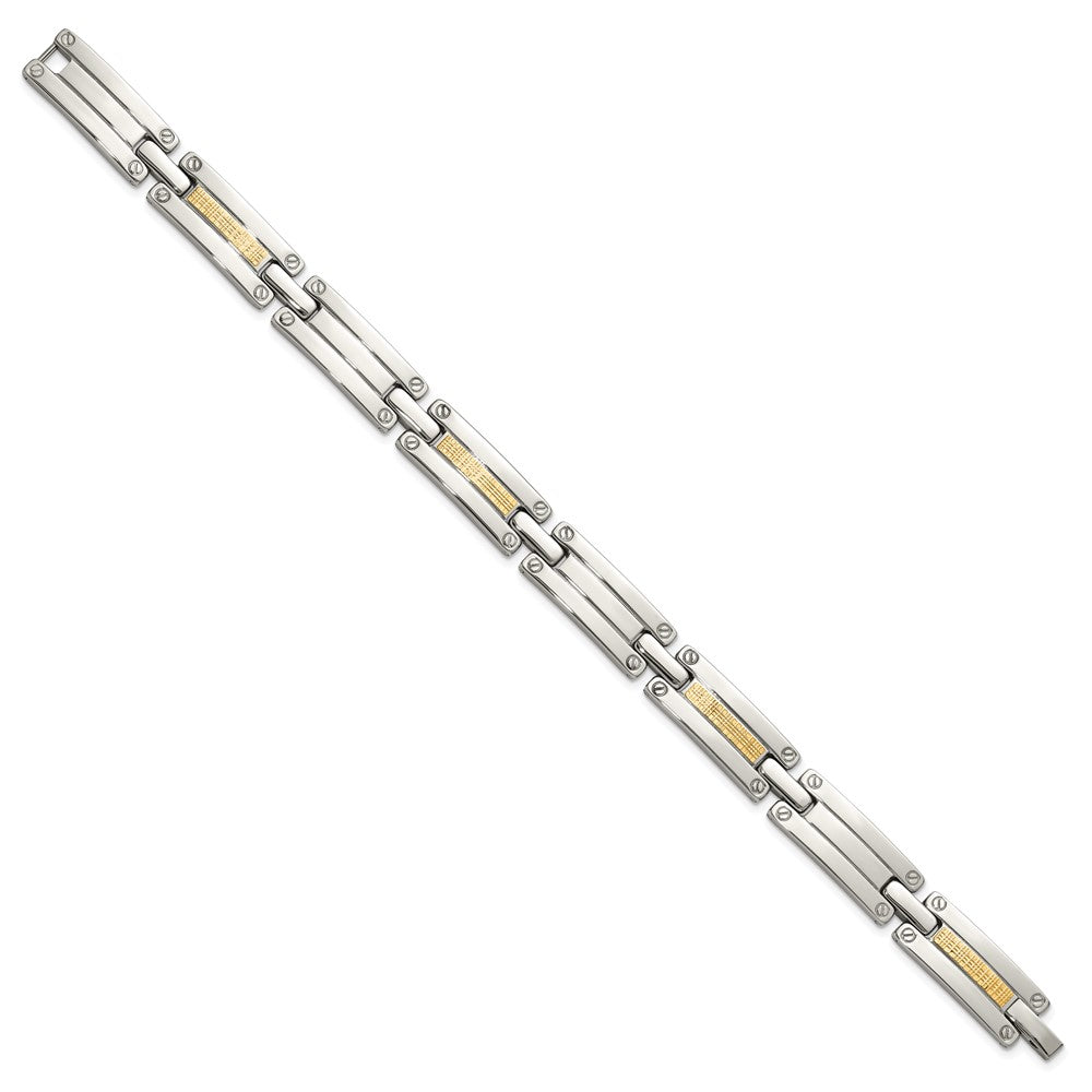 Chisel Stainless Steel Polished with 14K Gold Accent Basket Weave 8.5 inch Link Bracelet