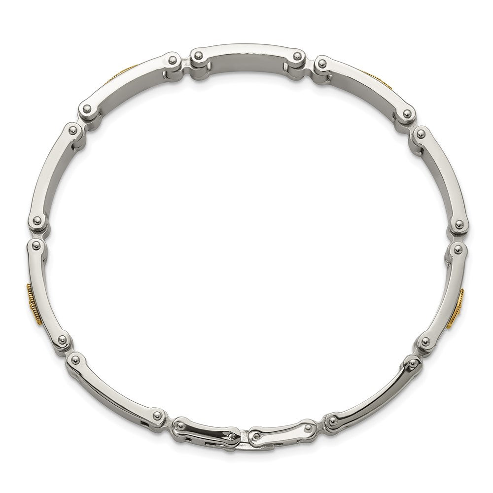 Chisel Stainless Steel Brushed and Polished with 14K Gold Accent and 1/20ct. Diamond 8.5 inch Bracelet