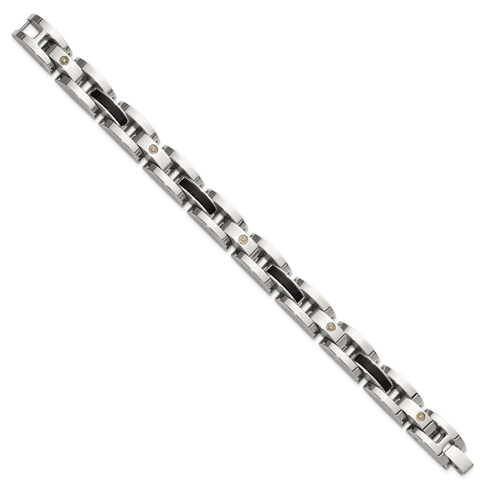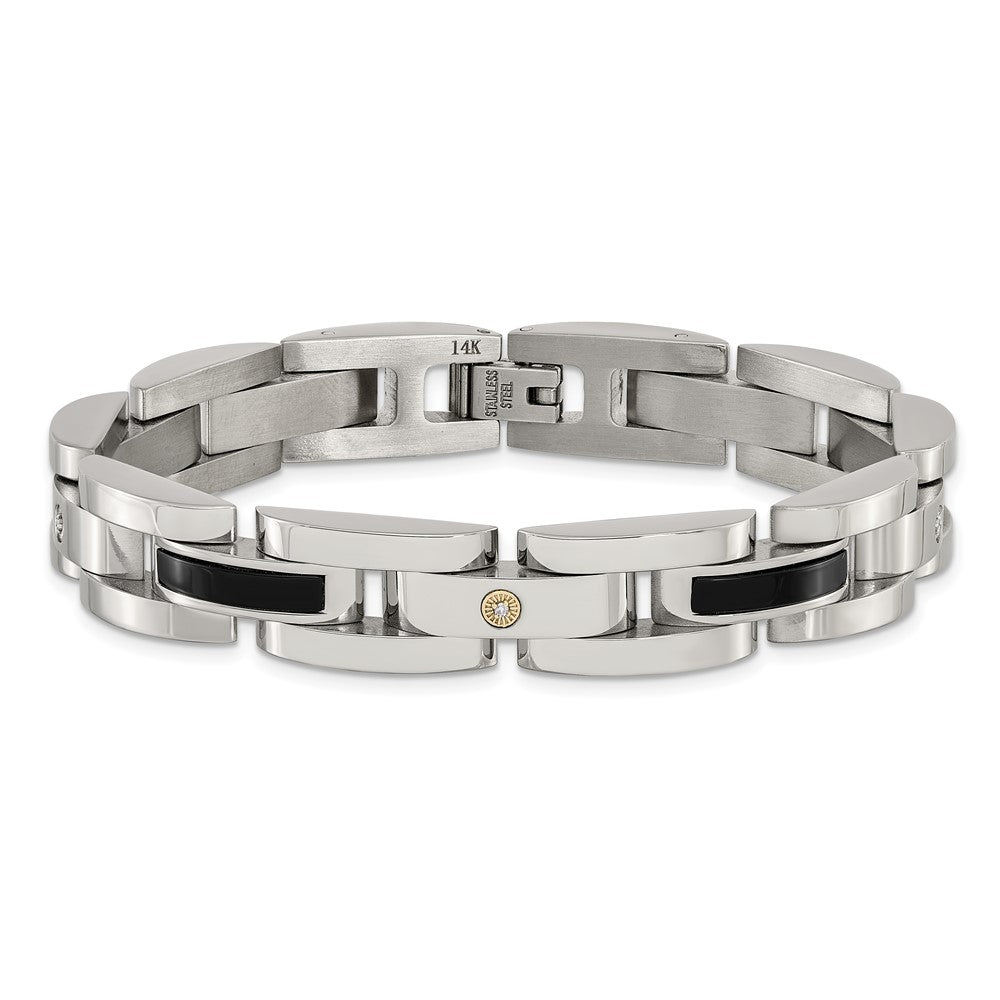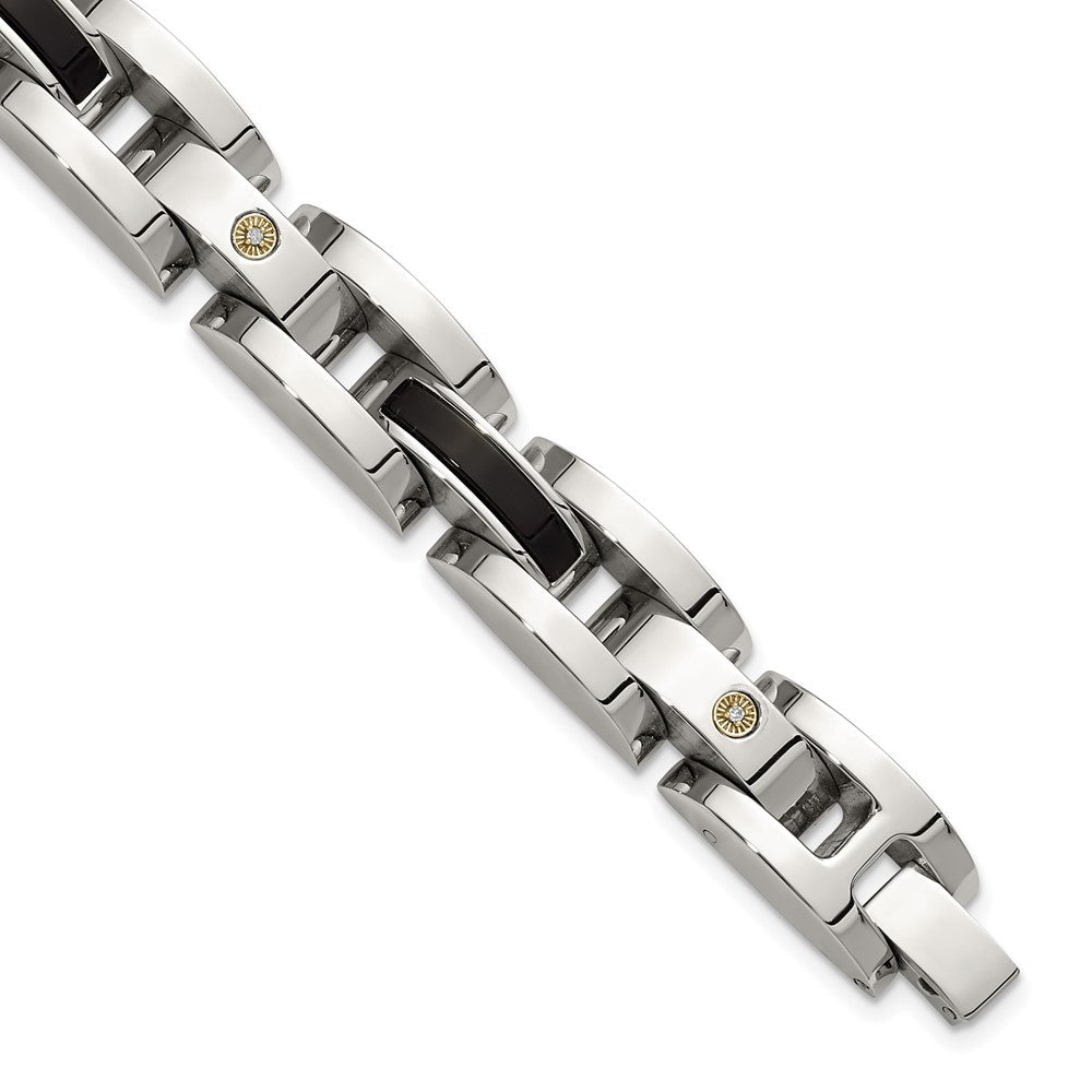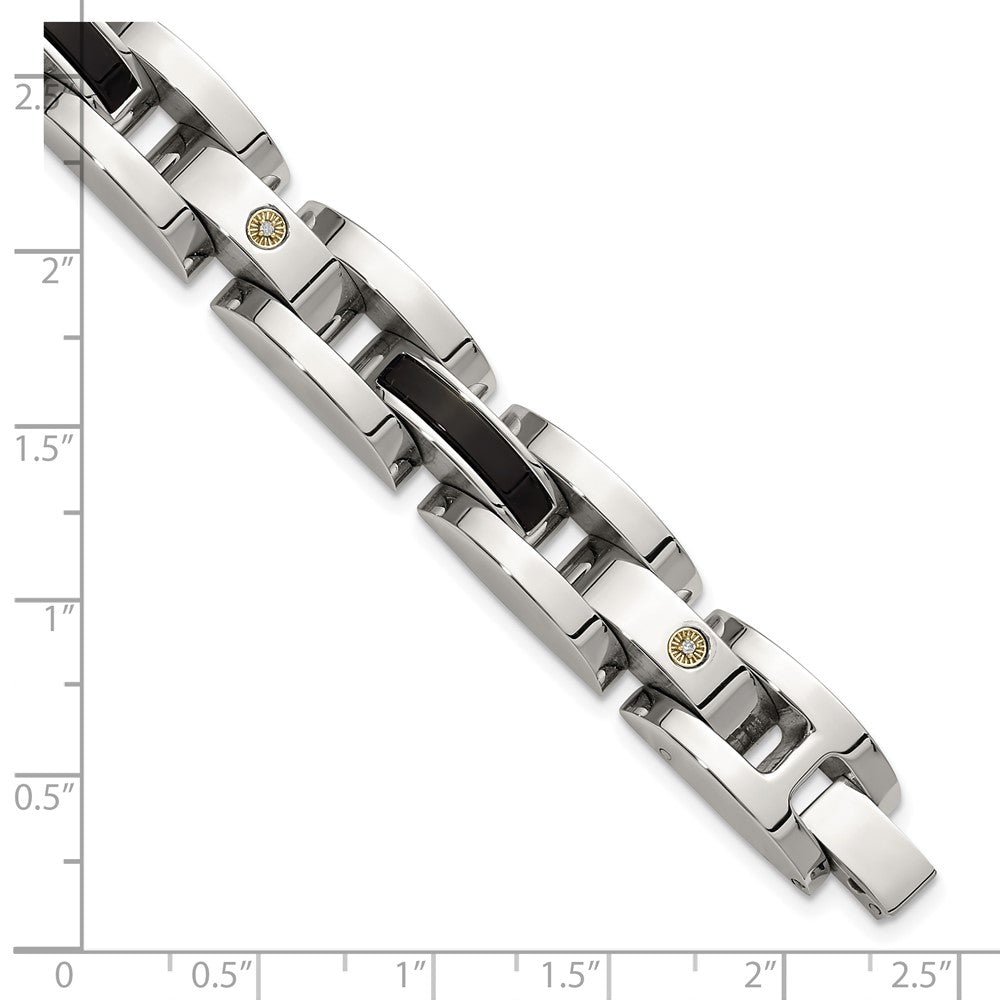 Chisel Stainless Steel Polished with .03ct Diamond and Onyx 8.25 inch Link Bracelet