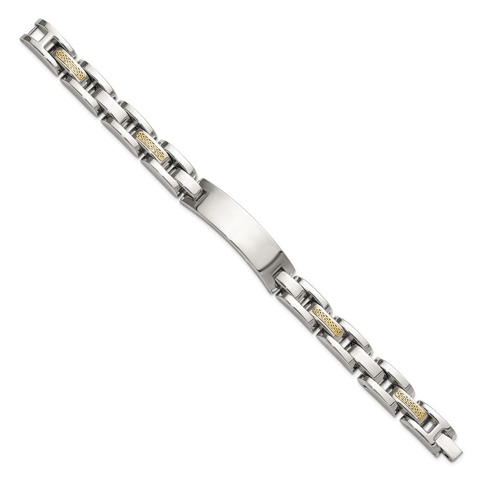 Chisel Stainless Steel Polished with 14K Gold Accent 8.5 inch ID Link Bracelet