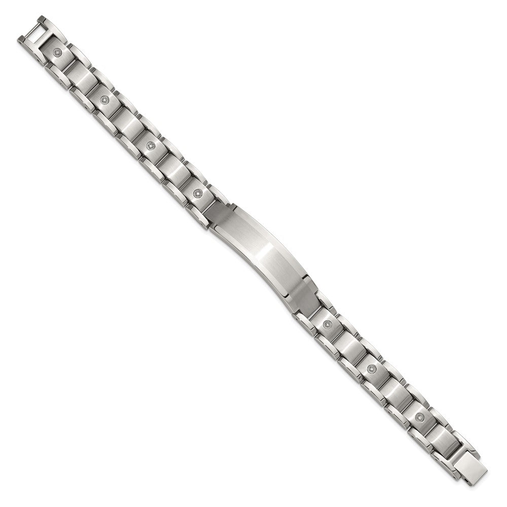 Chisel Stainless Steel Brushed and Polished with 14K White Gold Accent and 1/20ct. Diamond 8.5 inch Bracelet
