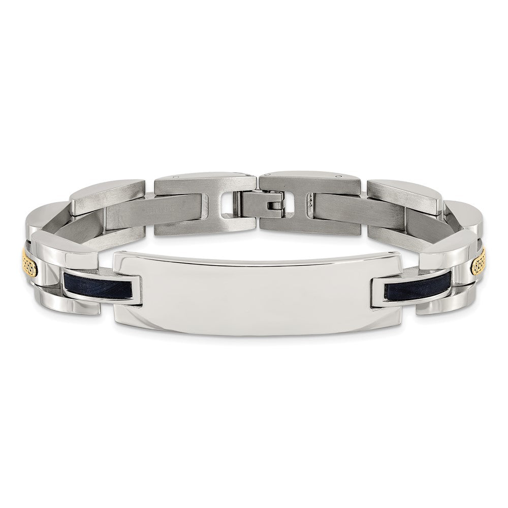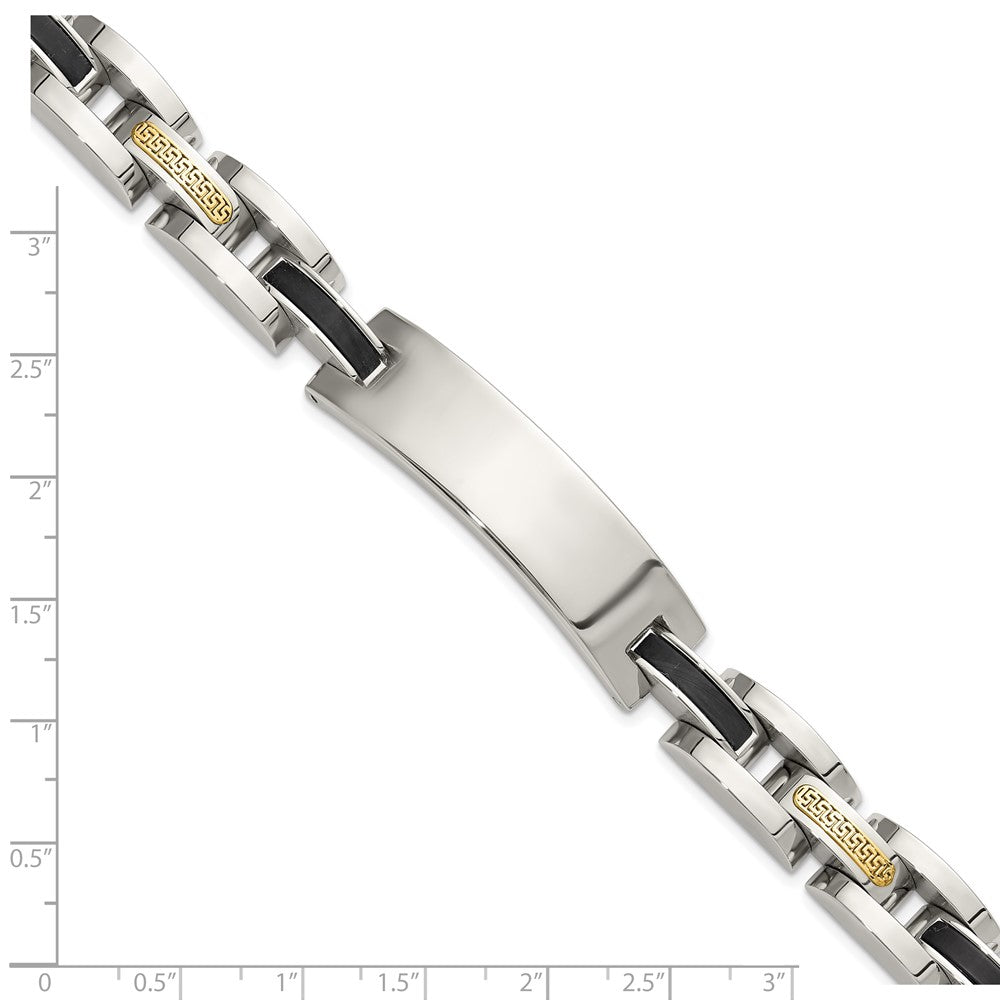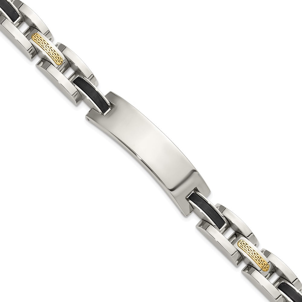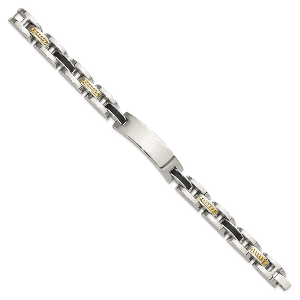 Chisel Stainless Steel Polished with 14K Gold Accent and Onyx 8.75 inch ID Link Bracelet