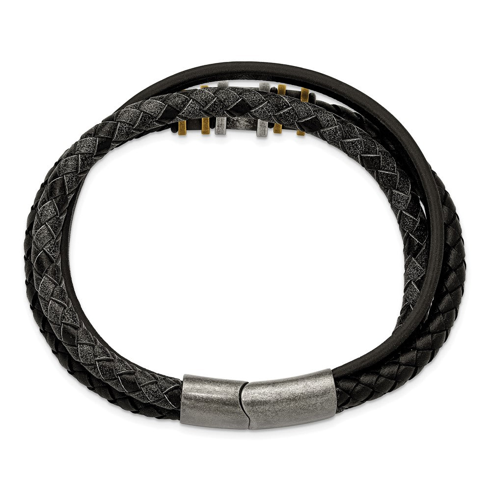 Chisel Stainless Steel Antiqued and Brushed Black Braided Leather Multi Strand 8.5 inch Bracelet