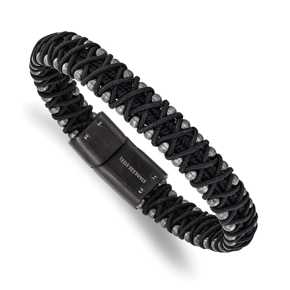 Chisel Stainless Steel Brushed Gunmetal IP-plated and Black Nylon 8.5 inch Bracelet