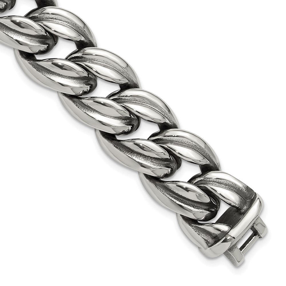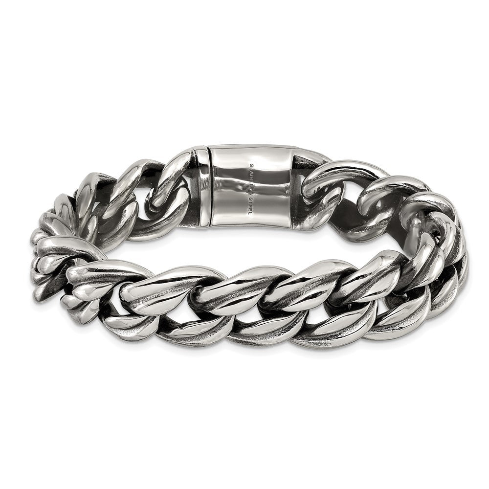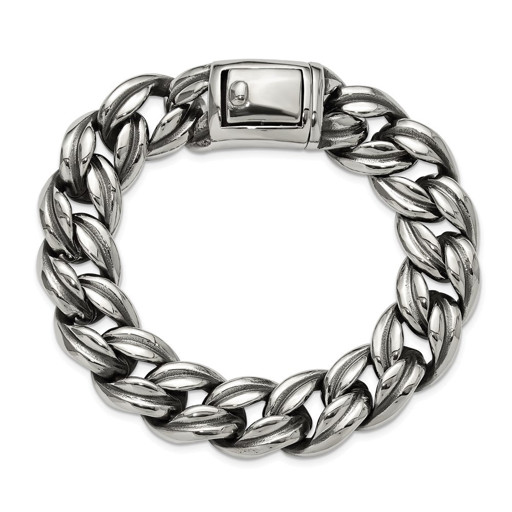Chisel Stainless Steel Antiqued and Polished 8.5 inch Curb Link Bracelet