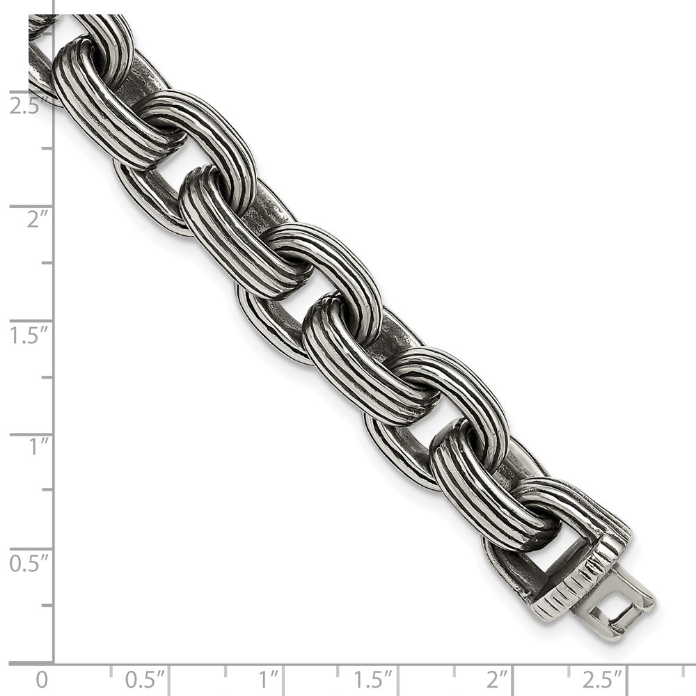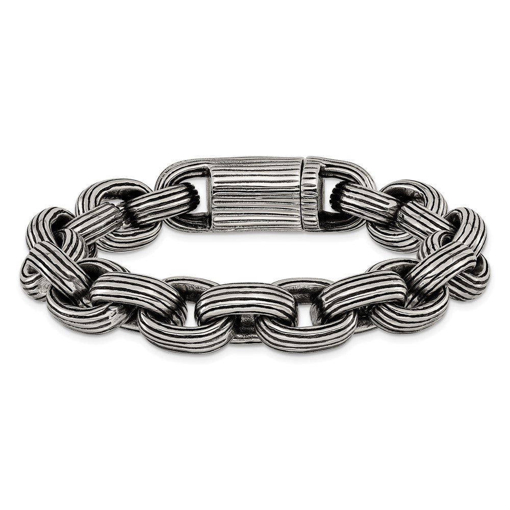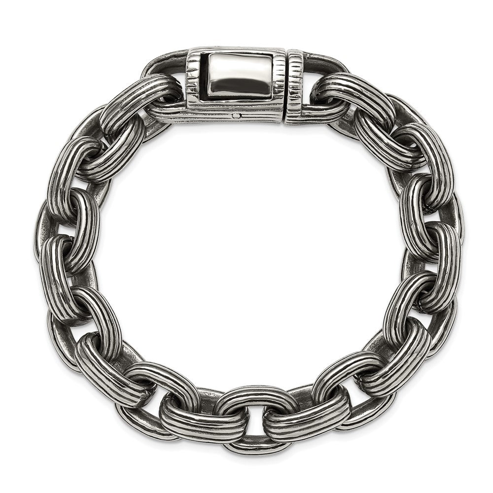 Chisel Stainless Steel Antiqued and Polished 8.5 inch Grooved Link Bracelet