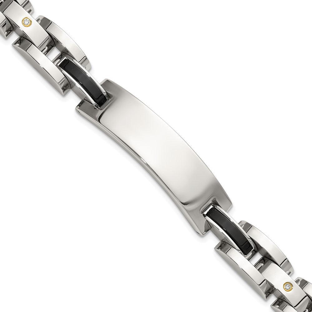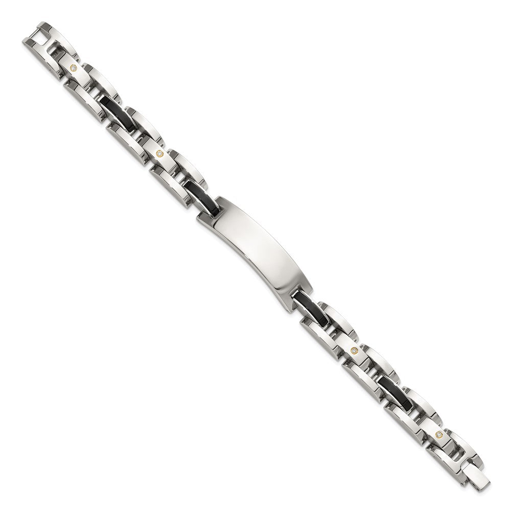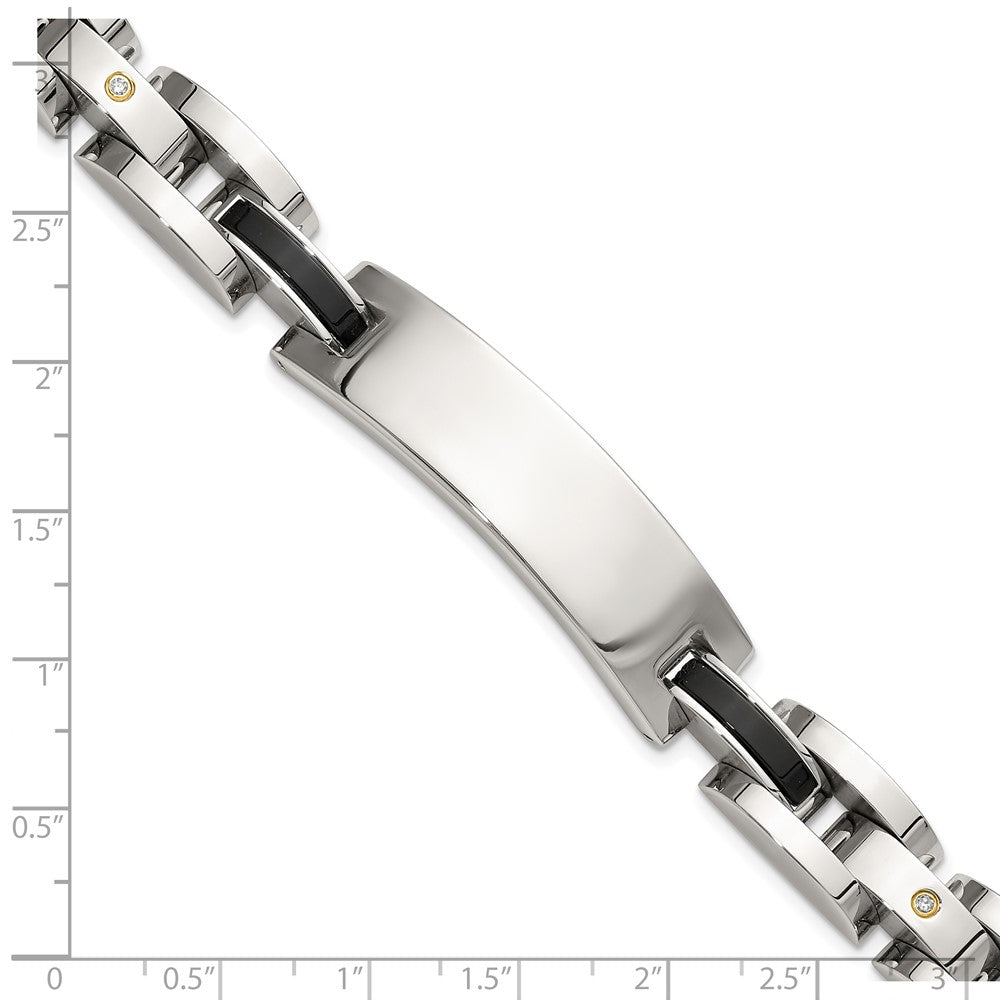 Chisel Stainless Steel Polished with 14K Gold Accent and 1/15ct. Diamond and Onyx 8.75 inch ID Bracelet