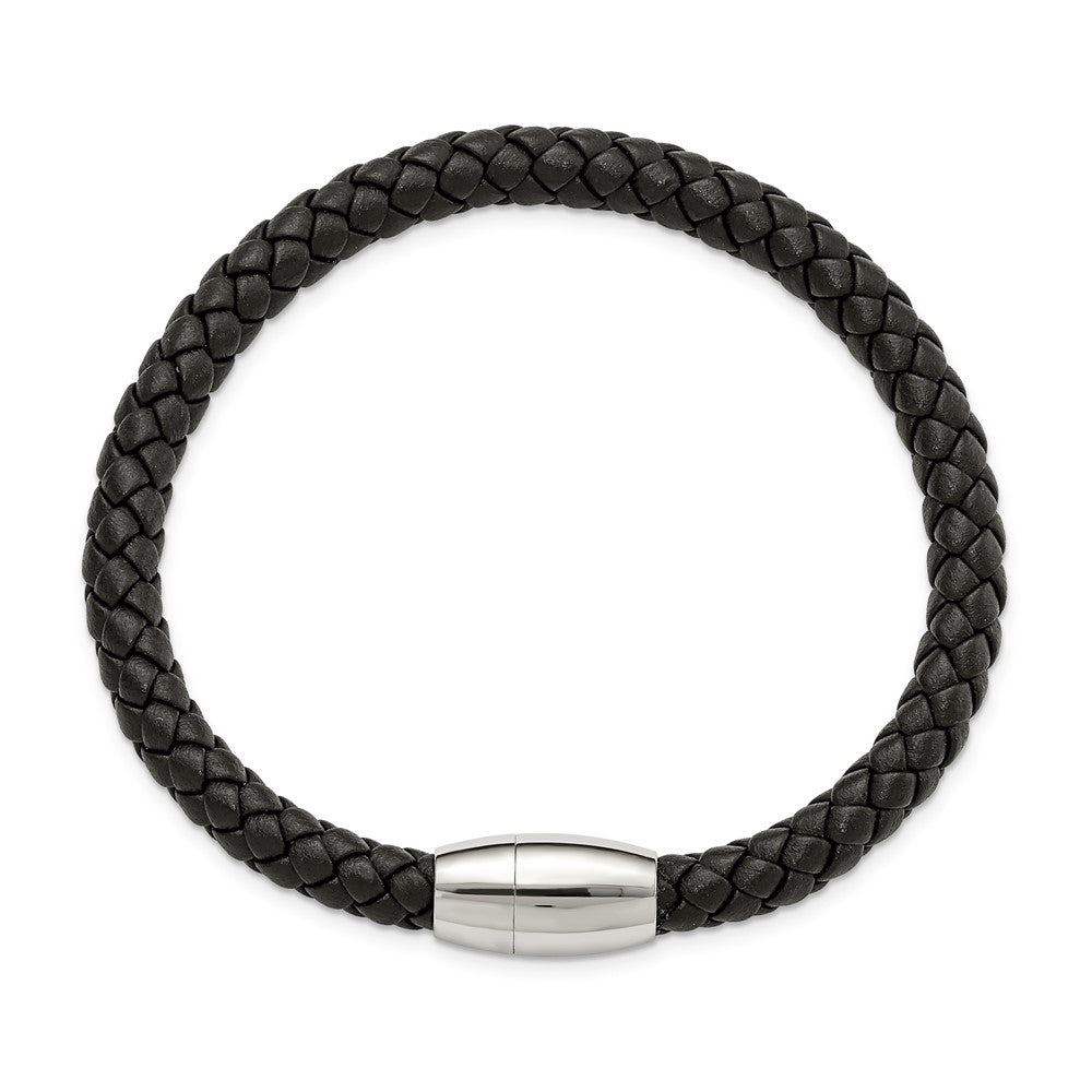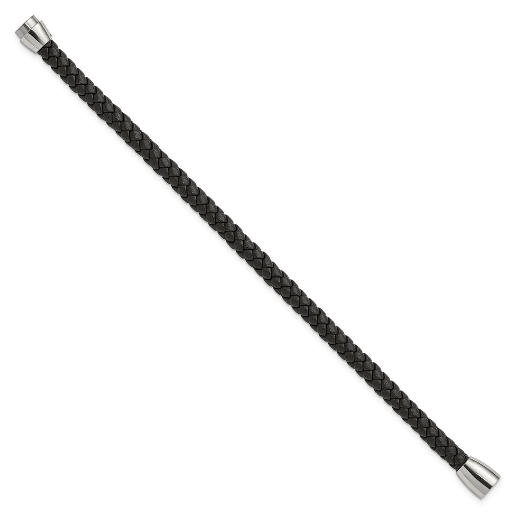 Chisel Stainless Steel Polished Black Braided Leather 8.5 inch Bracelet
