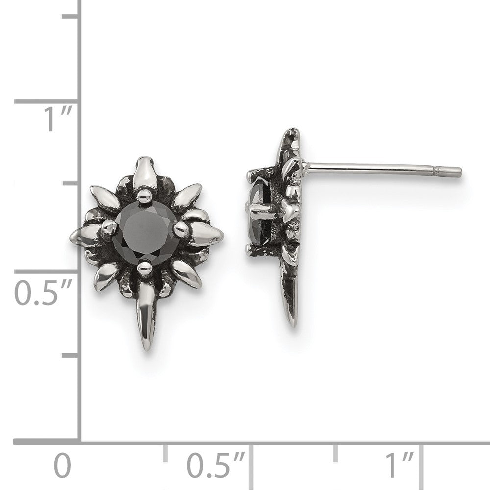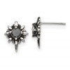 Chisel Stainless Steel Antiqued and Polished with Black CZ Post Earrings