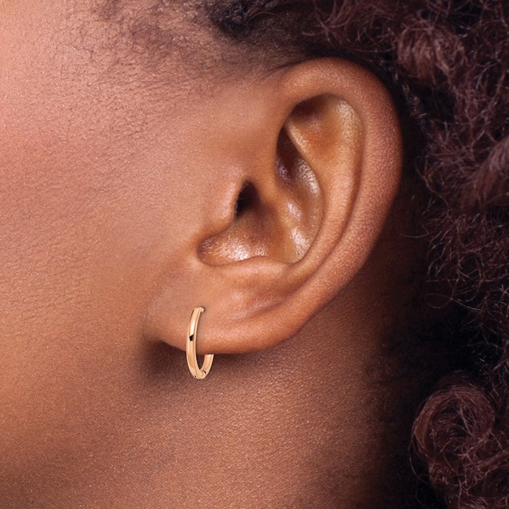 Chisel Stainless Steel Polished Rose IP-plated 1.6mm Hinged Hoop Earrings