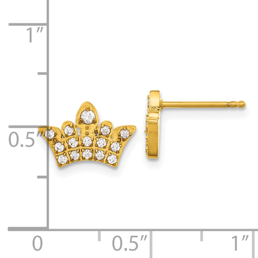 Chisel Stainless Steel Polished Yellow IP-plated with CZ Crown Earrings