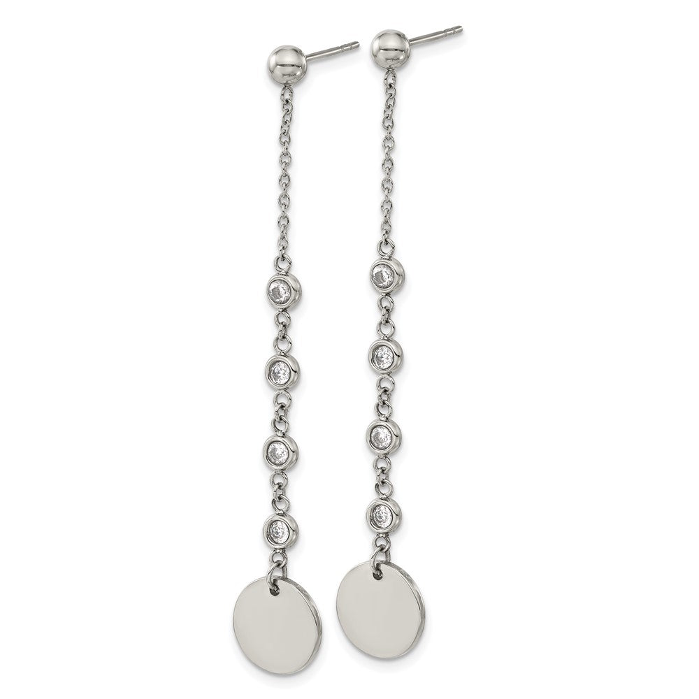 Chisel Stainless Steel Polished with CZ Post Dangle Earrings