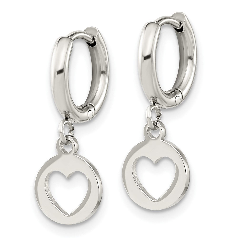 Chisel Stainless Steel Polished Cut Out Heart Dangle Hoop Earrings