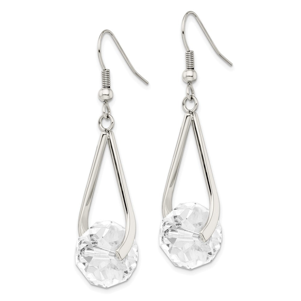 Chisel Stainless Steel Polished Glass Dangle Shepherd Hook Earrings