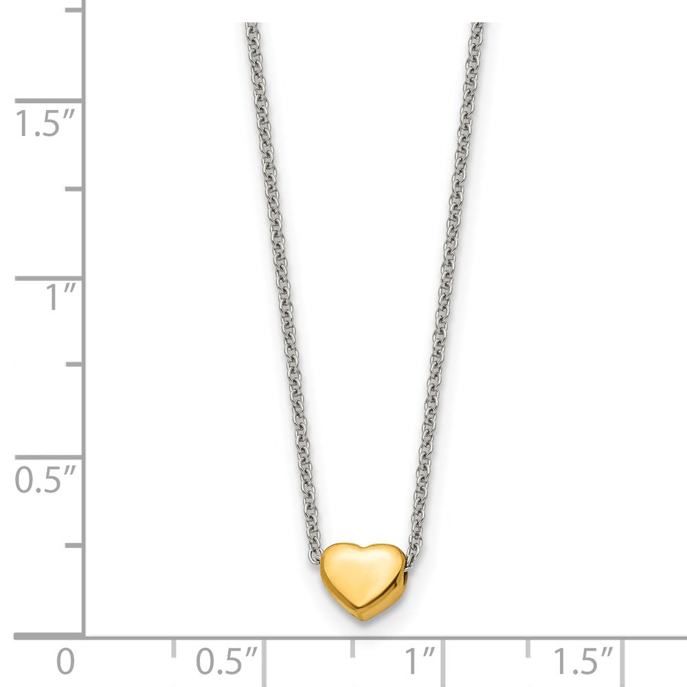 Chisel Stainless Steel Polished Yellow IP-plated Heart on a 16 inch Cable Chain Necklace