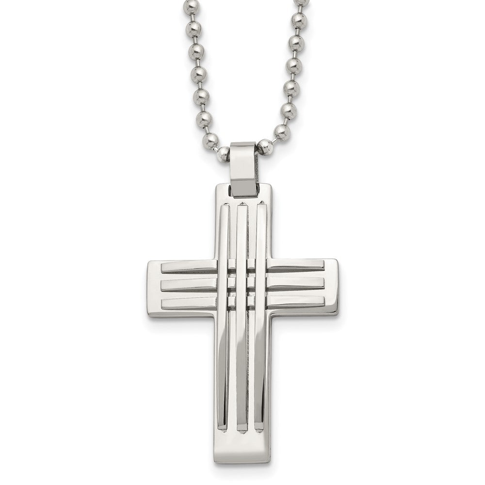 Chisel Stainless Steel Polished Cross Pendant on a 22 inch Ball Chain Necklace