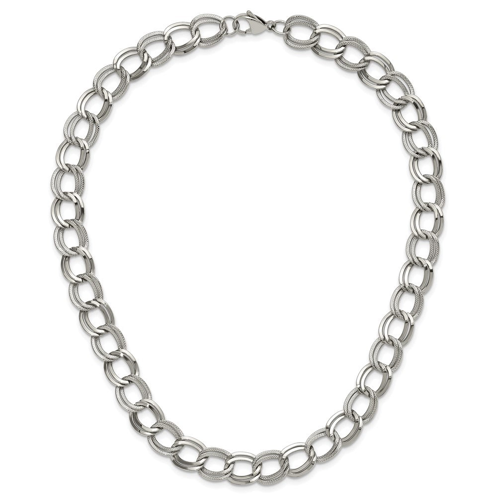 Chisel Stainless Steel Polished and Textured Link 17.5 inch Necklace