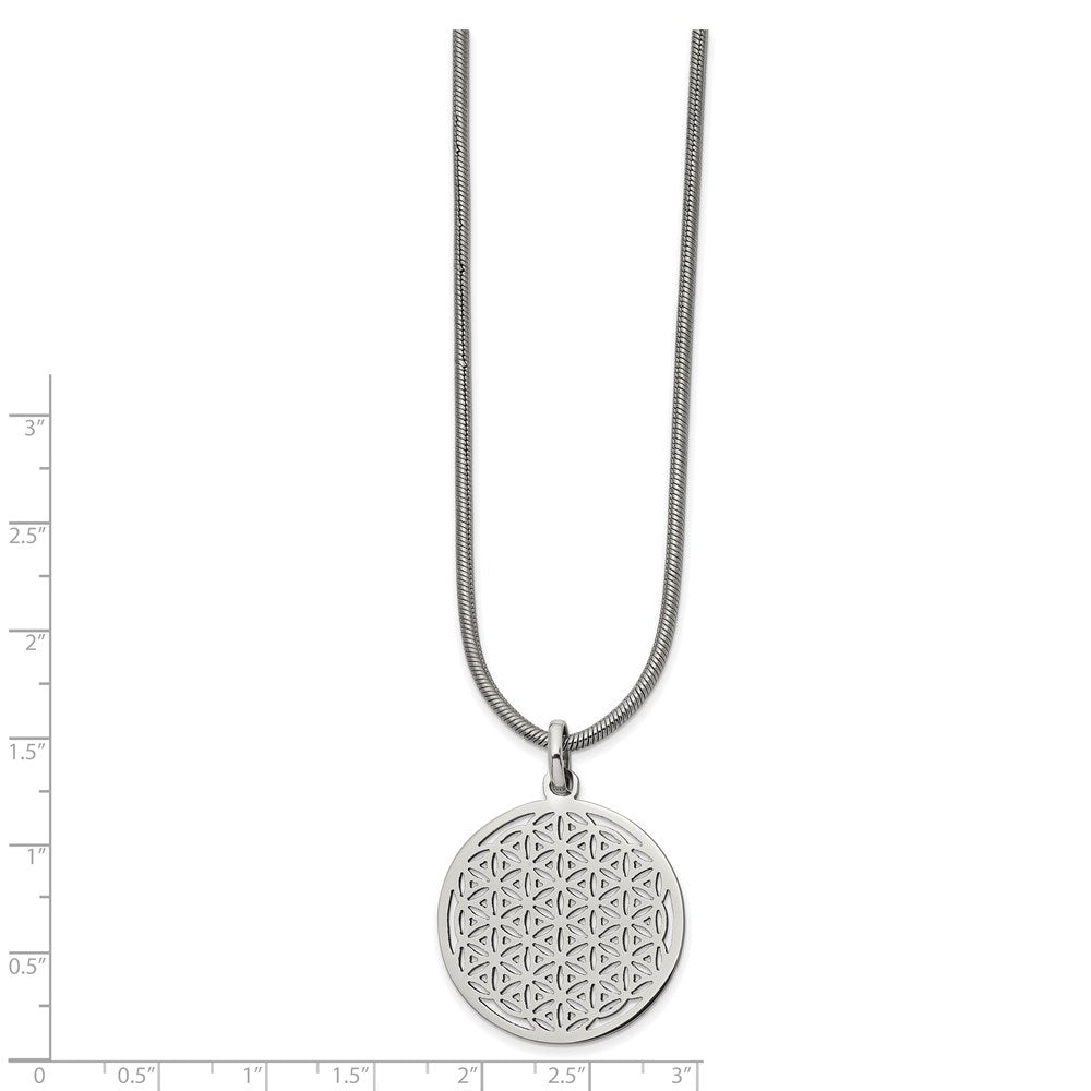 Chisel Stainless Steel Polished Flower Cut-out Small Circle Pendant on an 18 inch Snake Chain Necklace