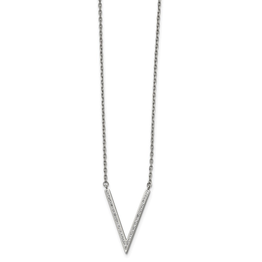 Chisel Stainless Steel Polished with Preciosa Crystal V Pendant on a 16.5 inch Cable Chain with a 1.25 inch Extension Necklace