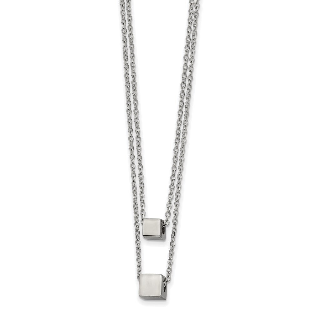 Chisel Stainless Steel Polished Square Beads on a Two Strand 17 inch Cable Chain with a 2 inch Extension Necklace