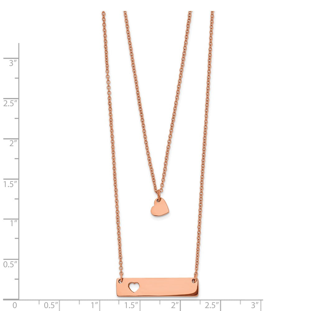 Chisel Stainless Steel Polished Rose IP-plated Heart and Bar Multi Strand 15.5 inch Cable Chain with a 1.5 inch Extension Necklace