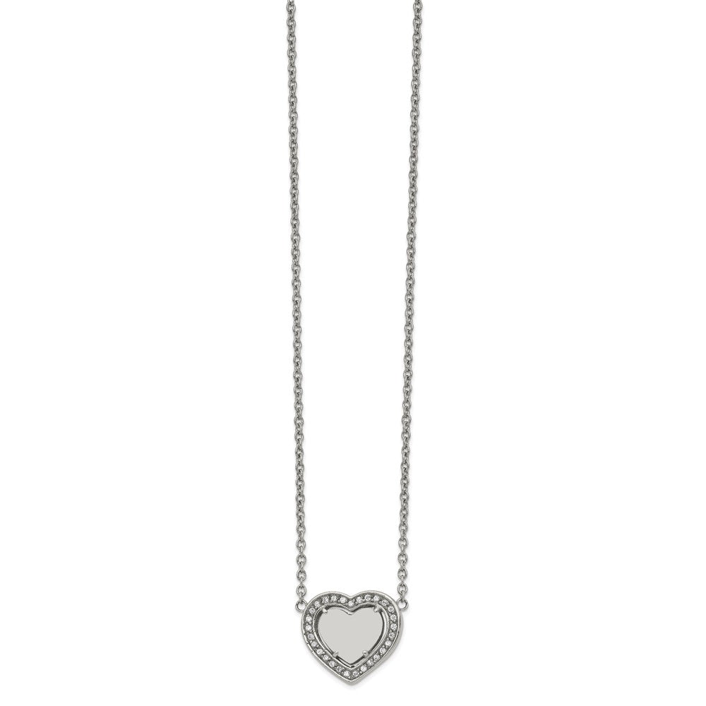 Chisel Stainless Steel Polished CZ Heart on a 19.25 inch Cable Chain with a 2 inch Extension Necklace
