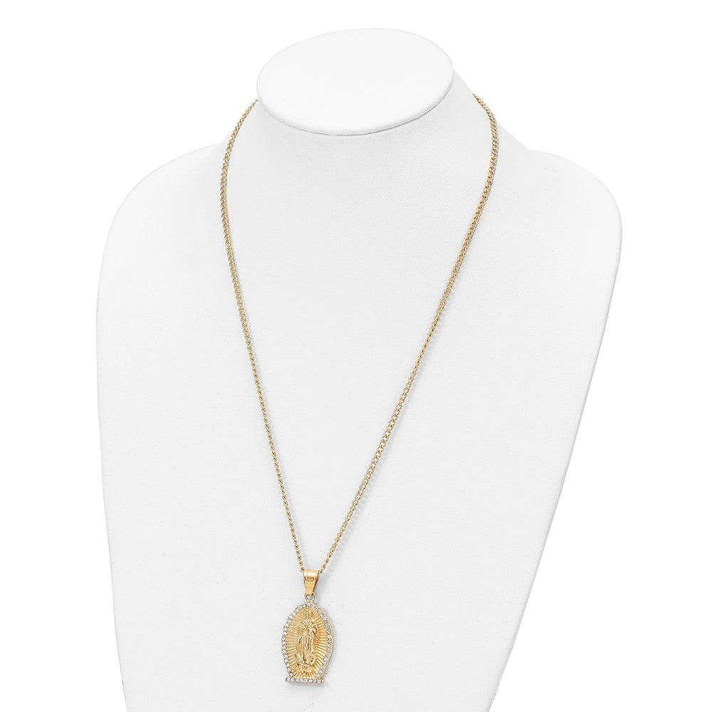 Chisel Stainless Steel Polished Yellow IP-plated with Crystal Our Lady of Guadalupe Pendant on a 24 inch Curb Chain Necklace