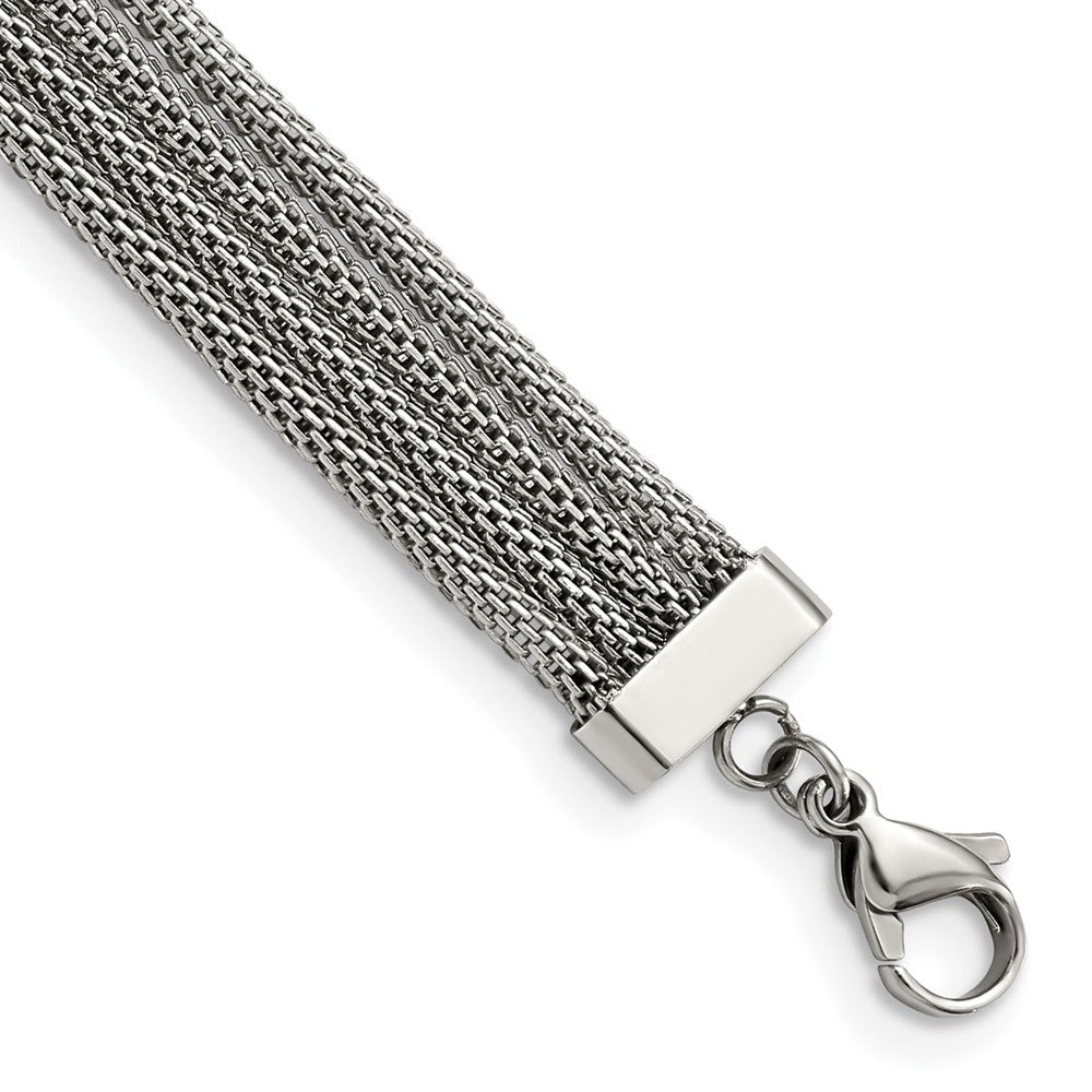 Chisel Stainless Steel Polished with CZ Multi Strand 11.75 inch with a 2.75 inch Extension Choker Necklace