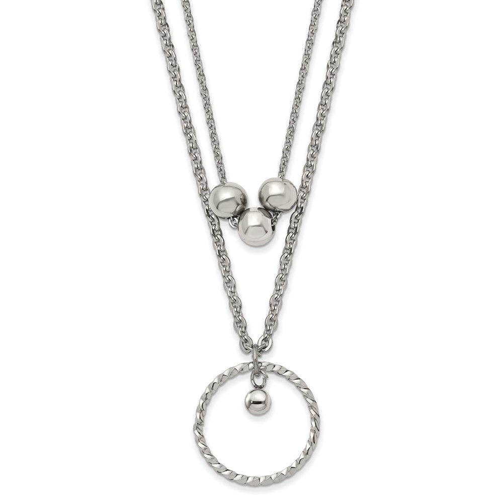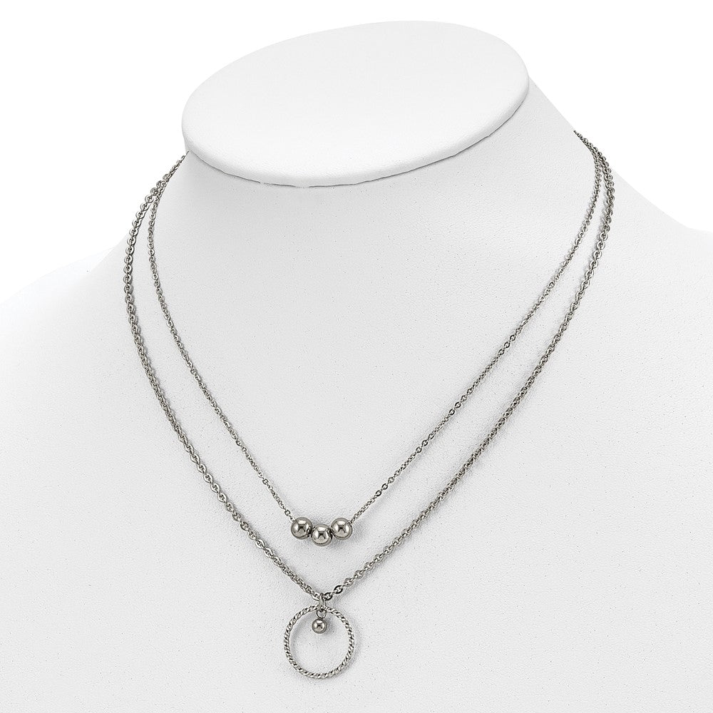 Chisel Stainless Steel Polished 2 Strand Circle and Beads 16.5 inch with a 1.75 inch Extension Necklace