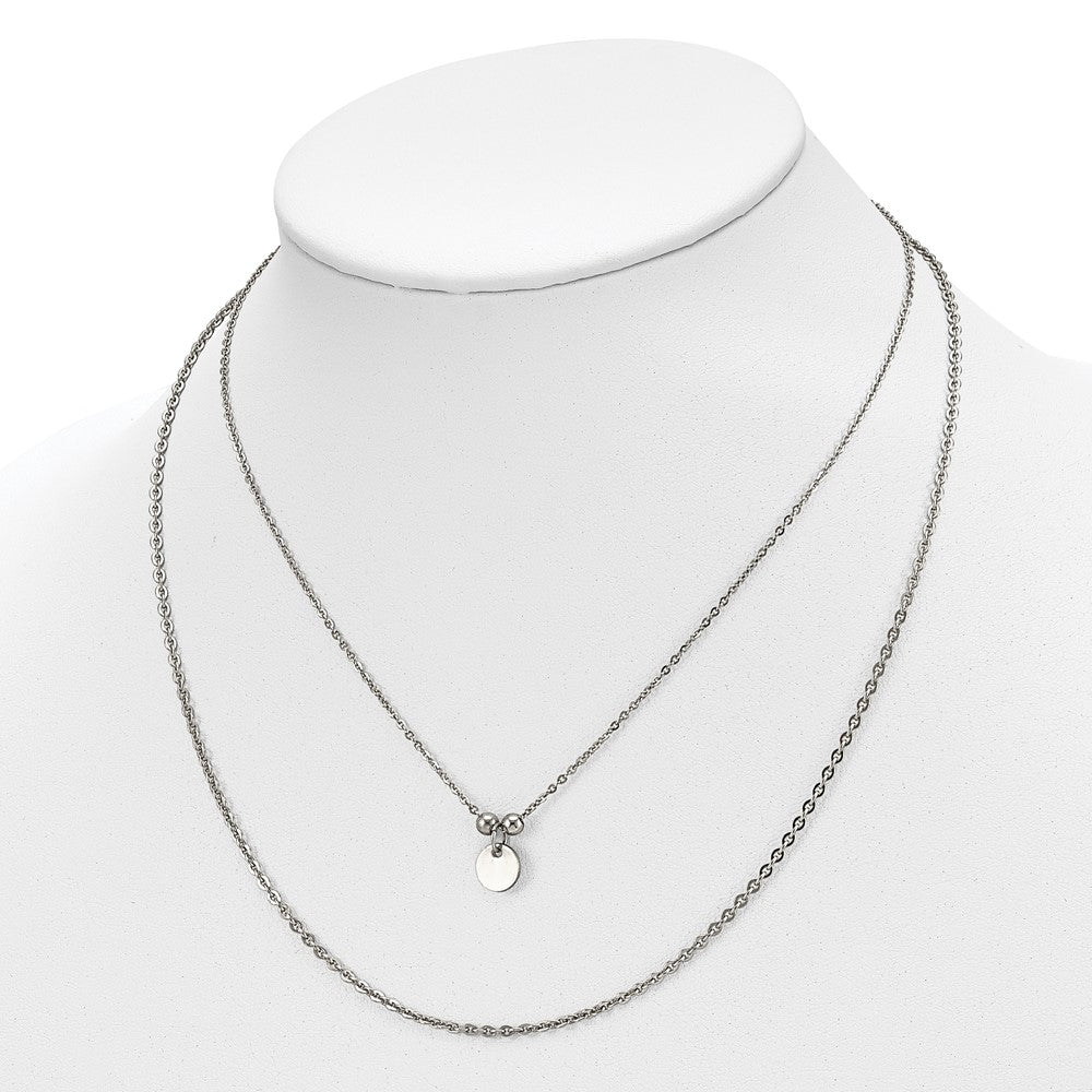 Chisel Stainless Steel Polished 2 Strand Small Disc 16.5 inch with a 1.5 inch Extension Necklace