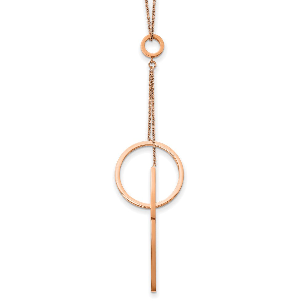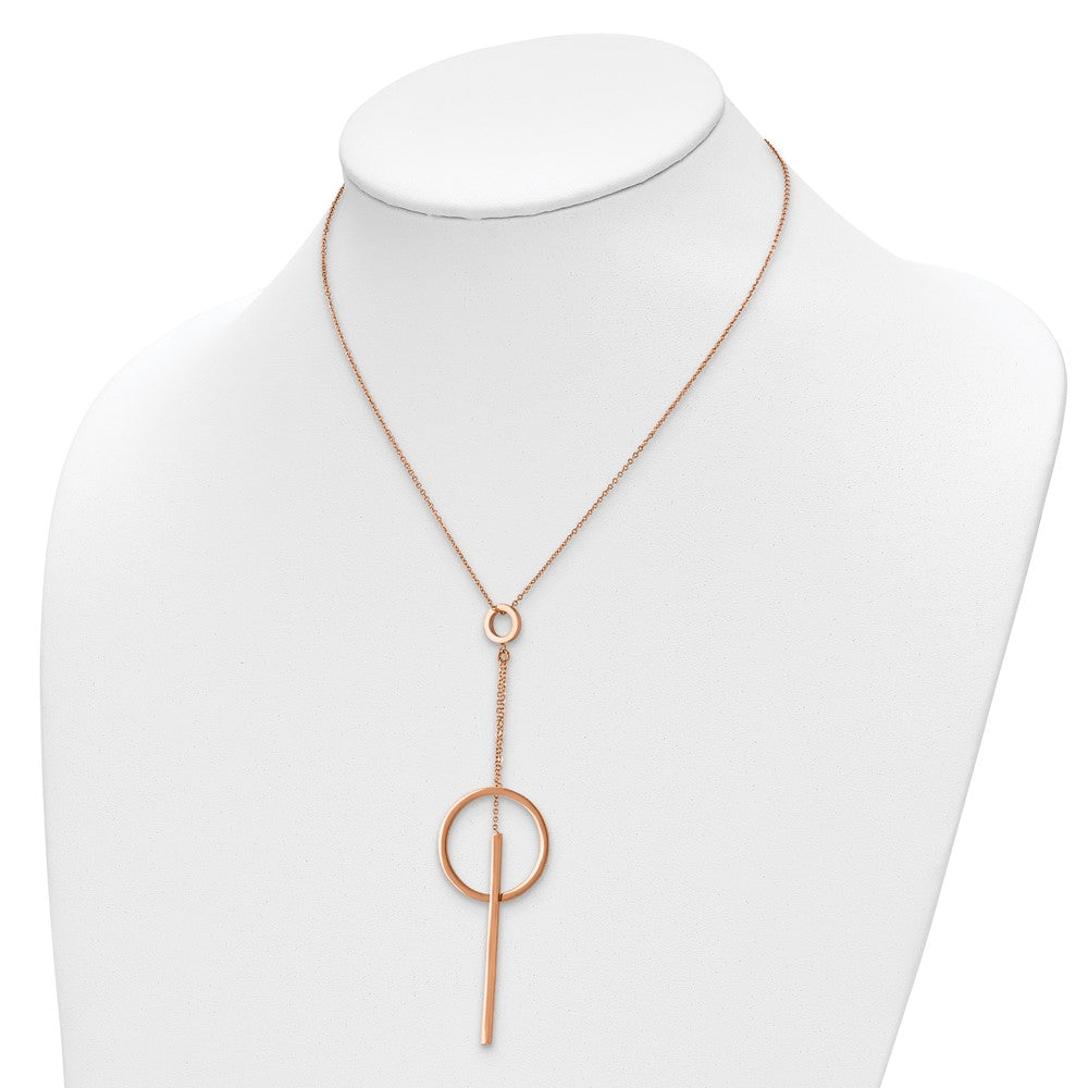Chisel Stainless Steel Polished Rose IP-plated Circle Dangle on a 16.5 inch Cable Chain with a 1.75 inch Extension Necklace