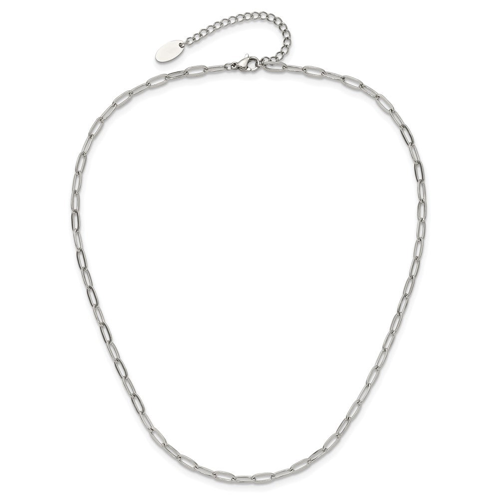 Chisel Stainless Steel Polished Elongated Open Link Paperclip15 inch with 2 inch extension Necklace