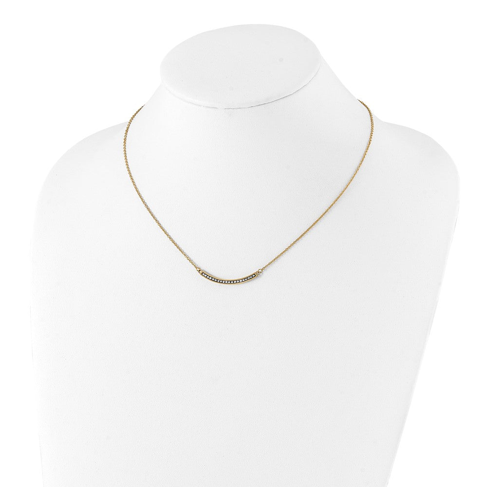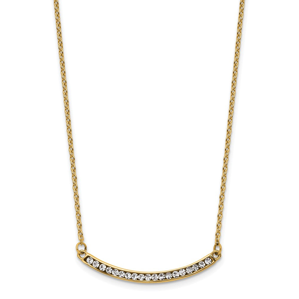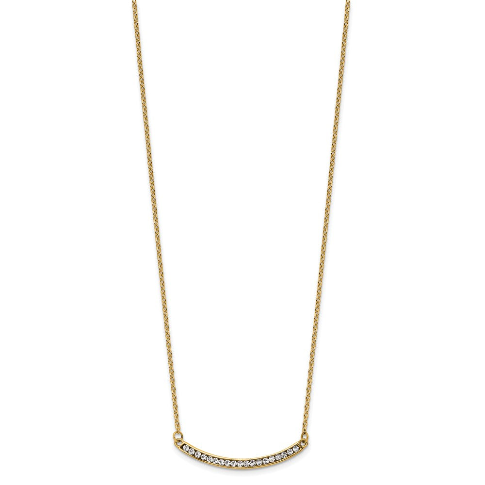 Chisel Stainless Steel Polished Yellow IP-plated Preciosa Crystal Curved Bar on a 17.75 inch Cable Chain with a 2 inch Extension Necklace